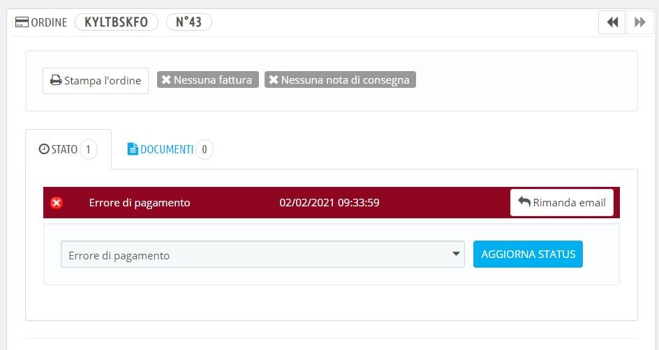 Bi.go Posted February 2, 2021 Share Posted February 2, 2021 Buongiorno a Tutti, questo è il mio primo topic. Utilizzo Prestashop 1.7.6.8 da novembre 2020, qualche giorno fa per esigenze commerciali ho dovuto inserire 3 numeri decimali alla fine delle cifre relative ai prezzi e ai totali degli ordini, faccio un esempio: mentre prima il totale dell'ordine usciva così --> 203,45 €, adesso esce fuori così --> 203,456 €. Da quando ho eseguito questa modifica, ogni volta che gli utenti scelgono come metodo di pagamento "In contanti alla consegna" nella sezione "Ordini" esce fuori l'avviso "Errore di pagamento" e relativa email inviata all'utente (inserisco screenshot). Per quanto riguarda gli altri metodi di pagamento (assegno e bonifico) nessun problema. Ho letto di un errore simile relativo a Paypal ma nessun topic che faccia riferimento al metodo di "pagamento in contanti". Qualcuno potrebbe gentilmente darmi un consiglio su come risolvere questo problema? Grazie in anticipo Link to comment Share on other sites More sharing options...