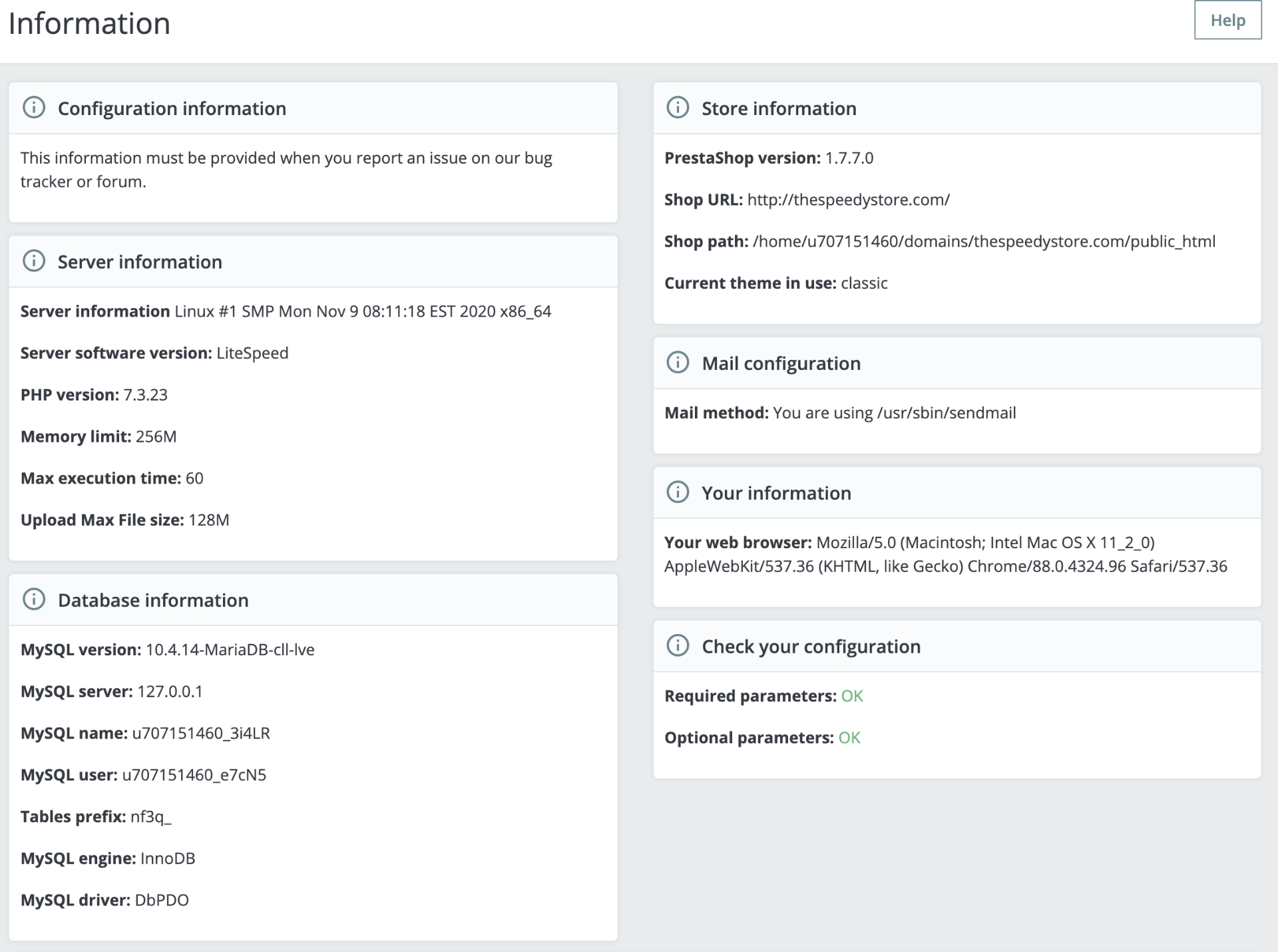 marcopolo11 Posted February 5, 2021 Author Share Posted February 5, 2021 By the way, these are my server settings (taken from Prestashop BO). Link to comment Share on other sites More sharing options...