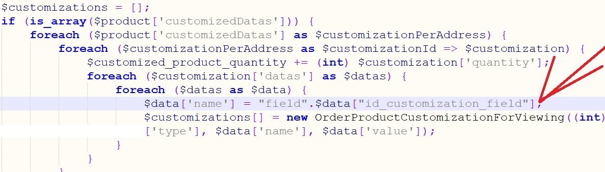 musicmaster Posted June 29, 2021 Share Posted June 29, 2021 The rest of the structure is filled correctly. Only the name is empty. Check the ps_customization_field_lang table that the name is filled in for all active languages in your shop for this customization. You could use the "solution" below as a quick fix to work around the problem. Link to comment Share on other sites More sharing options...