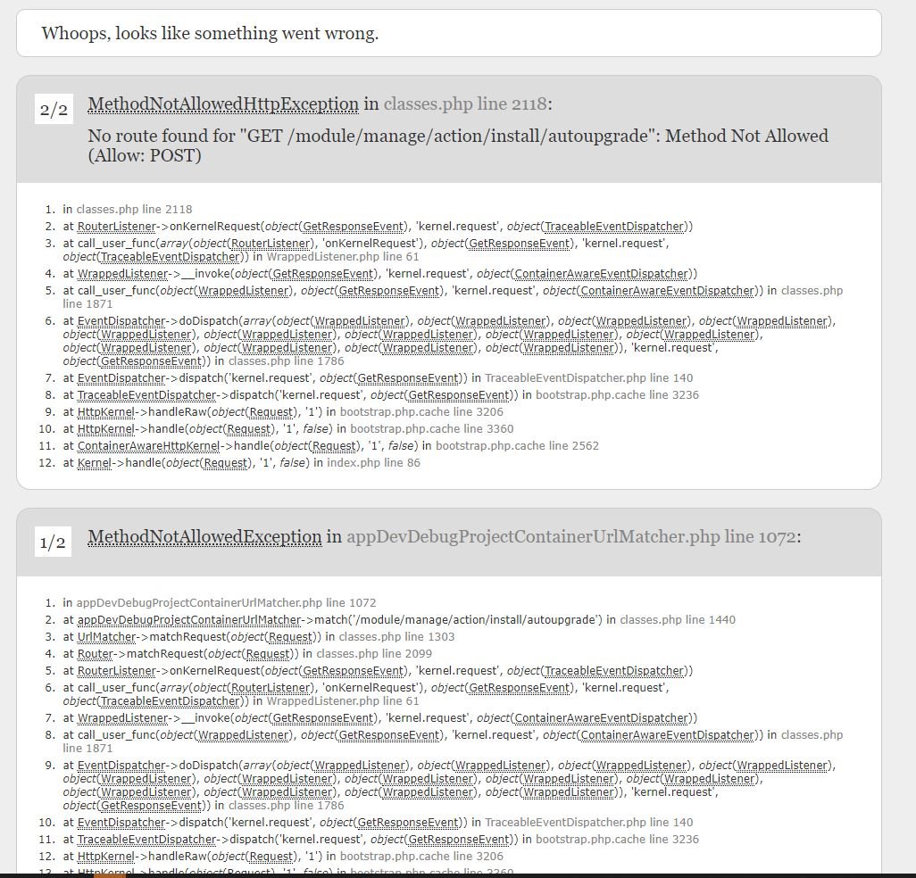 kaynaprod Posted February 8, 2021 Share Posted February 8, 2021 I migrated my site from one host to another and since then I have had some problems. In particular, I have to update my prestashop version in order to be able to use version 7 of php. I also have the following error when I inspect the request : Quote Error: Uncaught Symfony\Component\Debug\Exception\ContextErrorException: Notice: Use of undefined constant PHPEXCEL_ROOT - assumed 'PHPEXCEL_ROOT' in /home/ax477erb/public_html/vendor/phpoffice/phpexcel/Classes/PHPExcel/Shared/ZipArchive.php:31 Stack trace: #0 /home/ax477erb/public_html/vendor/phpoffice/phpexcel/Classes/PHPExcel/Shared/ZipArchive.php(31): Symfony\Component\Debug\ErrorHandler->handleError(8, 'Use of undefine...', '/home/ax477erb/...', 31, Array) #1 /home/ax477erb/public_html/vendor/symfony/symfony/src/Symfony/Component/Debug/FatalErrorHandler/ClassNotFoundFatalErrorHandler.php(194): require_once('/home/ax477erb/...') #2 /home/ax477erb/public_html/vendor/symfony/symfony/src/Symfony/Component/Debug/FatalErrorHandler/ClassNotFoundFatalErrorHandler.php(149): Symfony\Component\Debug\FatalErrorHandler\ClassNotFoundFatalErrorHandler->convertFileToClass('/home/ax477erb/...', '/home/ax477erb/...', 'PHPExcel') #3 /home/ax477erb/public_html/vendor/symfony/symfony/src/Symfony/Component/Debug/FatalErrorHandler/Cl (500 Internal Server Error) When I try to install the Prestashop 1.Click Upgrade module I have the following error: Quote MethodNotAllowedHttpException in classes.php line 2118:No route found for "GET /module/manage/action/install/autoupgrade": Method Not Allowed (Allow: POST) in classes.php line 2118 at RouterListener->onKernelRequest(object(GetResponseEvent), 'kernel.request', object(TraceableEventDispatcher)) at call_user_func(array(object(RouterListener), 'onKernelRequest'), object(GetResponseEvent), 'kernel.request', object(TraceableEventDispatcher)) in WrappedListener.php line 61 at WrappedListener->__invoke(object(GetResponseEvent), 'kernel.request', object(ContainerAwareEventDispatcher)) at call_user_func(object(WrappedListener), object(GetResponseEvent), 'kernel.request', object(ContainerAwareEventDispatcher)) in classes.php line 1871 at EventDispatcher->doDispatch(array(object(WrappedListener), object(WrappedListener), object(WrappedListener), object(WrappedListener), object(WrappedListener), object(WrappedListener), object(WrappedListener), object(WrappedListener), object(WrappedListener), object(WrappedListener), object(WrappedListener), object(WrappedListener), object(WrappedListener)), 'kernel.request', object(GetResponseEvent)) in classes.php line 1786 at EventDispatcher->dispatch('kernel.request', object(GetResponseEvent)) in TraceableEventDispatcher.php line 140 at TraceableEventDispatcher->dispatch('kernel.request', object(GetResponseEvent)) in bootstrap.php.cache line 3236 at HttpKernel->handleRaw(object(Request), '1') in bootstrap.php.cache line 3206 at HttpKernel->handle(object(Request), '1', false) in bootstrap.php.cache line 3360 at ContainerAwareHttpKernel->handle(object(Request), '1', false) in bootstrap.php.cache line 2562 at Kernel->handle(object(Request), '1', false) in index.php line 86 Thank you in advance for your help. Link to comment Share on other sites More sharing options...