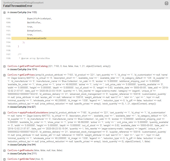 0 Chris1994 Posted February 9, 2021 Author Share Posted February 9, 2021 Odkryłem w trybie debugowania kilka błędów, wskazują na koszyk, ale nie rozumiem co one oznaczają Niżej screen z trybu debugowania Link to comment Share on other sites More sharing options...