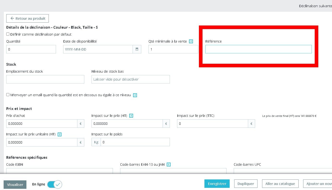 Cependant aujourd'hui je travaille sans logiciel de stock, toutes les déclinaisons de mes produits n'ont aucune référence déclinaison.