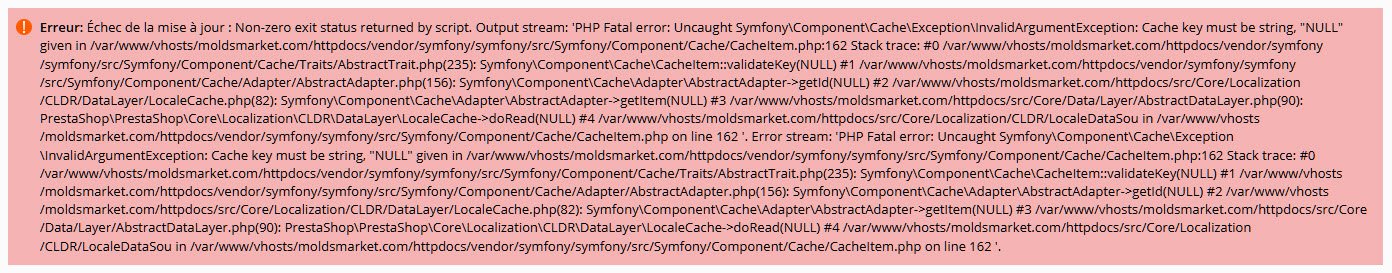 Oakoo Posted February 11, 2021 Share Posted February 11, 2021 Bonjour à tous, J'ai cherché à effectuer la mise à jour de PrestaShop (1771-89) depuis mon panneau Plesk e BIM, problème PHP. Impossible désormais d'accéder au Backoffice, tout est bloqué. L'erreur affichée est la suivante (pièce jointe). Avez-vous un conseil, une idée? Merci Link to comment Share on other sites More sharing options...