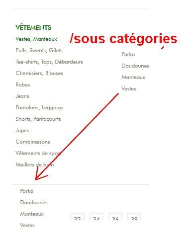 ps2021 Posted February 12, 2021 Author Share Posted February 12, 2021 (edited) Je t'explique: J'ai une colonne de gauche "catégories" Les sous catégories et sous sous catégories sont alors cachées , et il faut cliquer dessus pour qu'elles apparaissent... Ca c'est le fonctionnement normal. Eh bien, quand j'ai ajouté mon fichier CSV contenant mes produits ça a bien ajouté les produits sur le site, mais toutes les sous catégories et sous sous catégories se sont ajoutées sous les catégories... Moi, je n'ai pas besoin qu'elles s'ajoutent à nouveau sous mes catégories puisqu'elles sont déjà dans les catégories de la colonne... Je te montre un exemple: Edited February 12, 2021 by ps2021 (see edit history) Link to comment Share on other sites More sharing options...