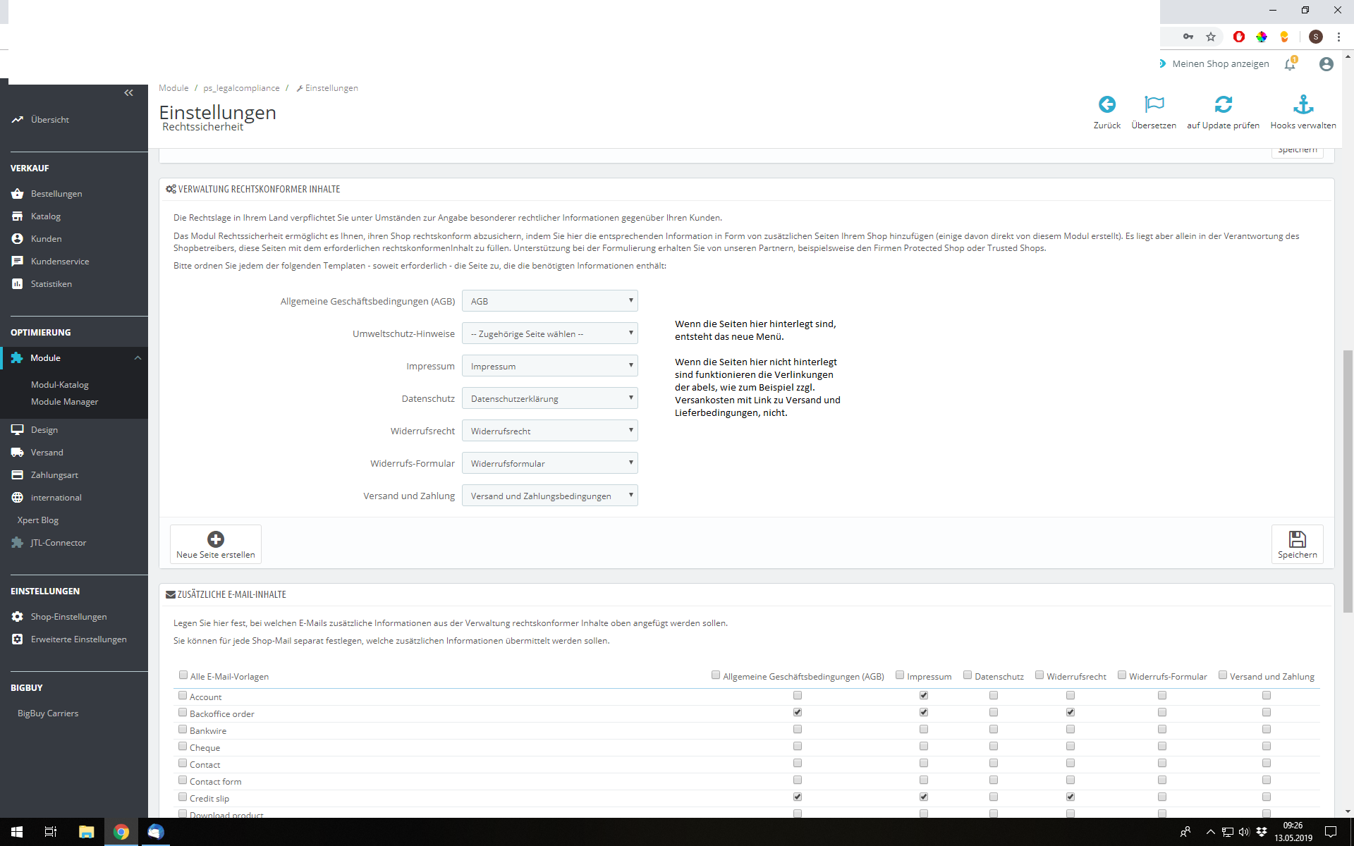Legal compliance module: no e-mails displayed for adding CMS page content