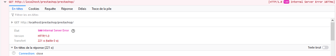 jasonlj Posted February 16, 2021 Share Posted February 16, 2021 (edited) Hi, i have a problem: I upgrade some module on prestashop 1.7, then i reload my page and i had a error 500 : GEThttp://localhost/prestashop/prestashop/[HTTP/1.0 500 Internal Server Error 1885ms] I dont have access to my front or my backoffice im in local server Someone can help me pls Edited February 16, 2021 by jasonlj (see edit history) Link to comment Share on other sites More sharing options...