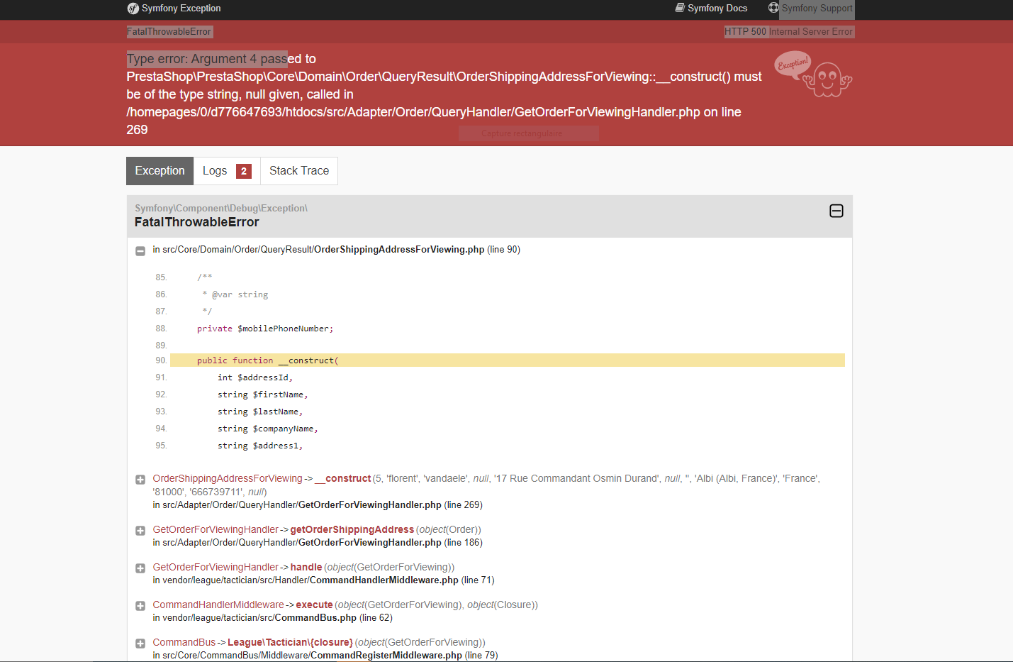 florent vandaele Posted February 17, 2021 Share Posted February 17, 2021 Bonjour je rencontre un problème de taille et j'espère que l'on pourra m'aider à le corriger. Je comprends pas bien d'où vient l'erreur c'est vraisemblablement le symfony qui déconne, j'ai un message d'erreur qui apparait en mode debug lorsque je souhaite consulter une commande ou même la fiche client. Le reste du BO marche bien aucun problème c'est seulement quand je consulte l'historique des commandes. Je mets ci joint une capture du message d'erreur et une 2eme capture que j'ai eu en naviguant dans le BO (bizarre). Merci par avance pour votre aide. Link to comment Share on other sites More sharing options...