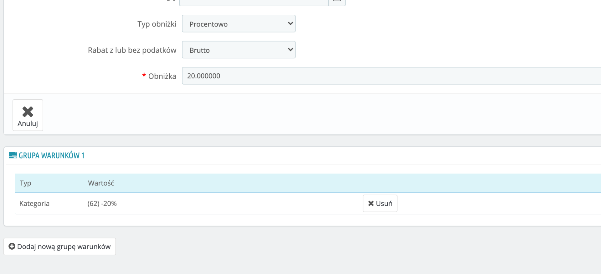 maltit Posted February 23, 2021 Share Posted February 23, 2021 I have a category -20%, to which I add products that should be discounted. Unfortunately, after adding a new product to this category its price is not reduced. For the discount to be calculated I have to remove and then add a rule for the catalog. Link to comment Share on other sites More sharing options...