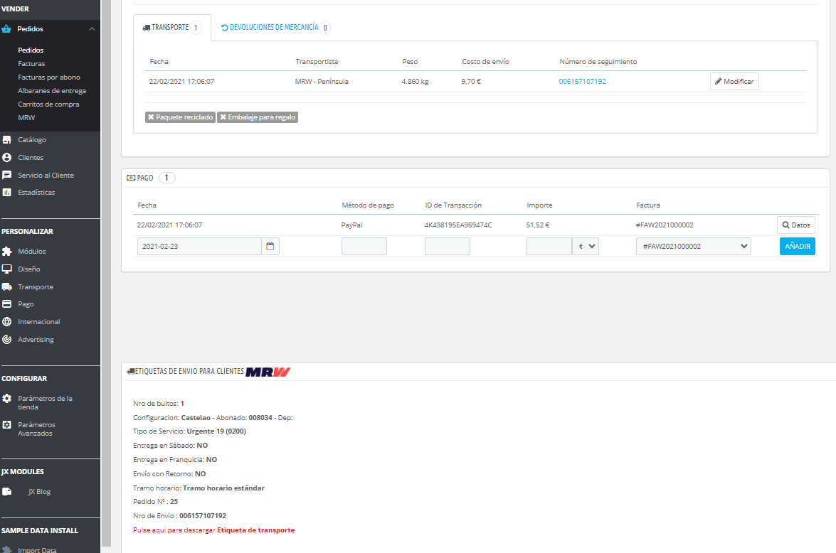 Nos estamos dando cuenta que cuando se inicia sesión como vendedor no aparece el apartado del transportista para generar las etiquetas: