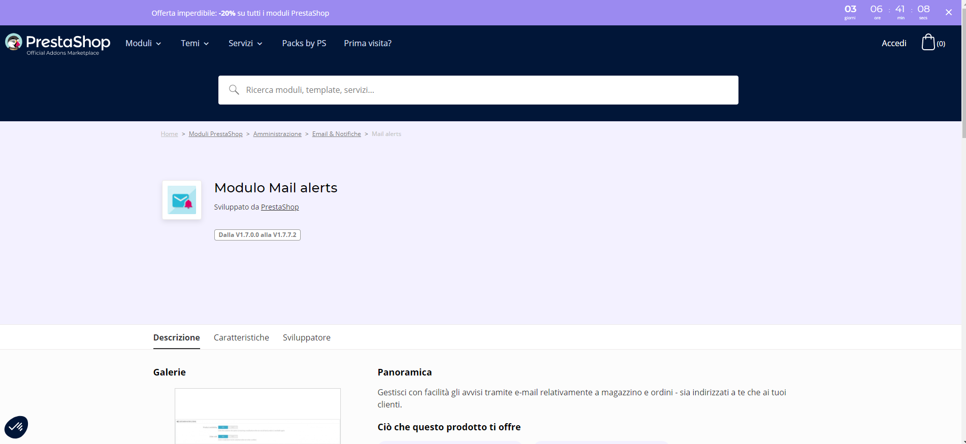 Seguendo la discussione di quel forum da te postato ho installato il modulo ps_mbo con cui poi sono riuscito ad accedere al catalogo moduli. Da lì poi ho installato con successo il modulo mail alert.