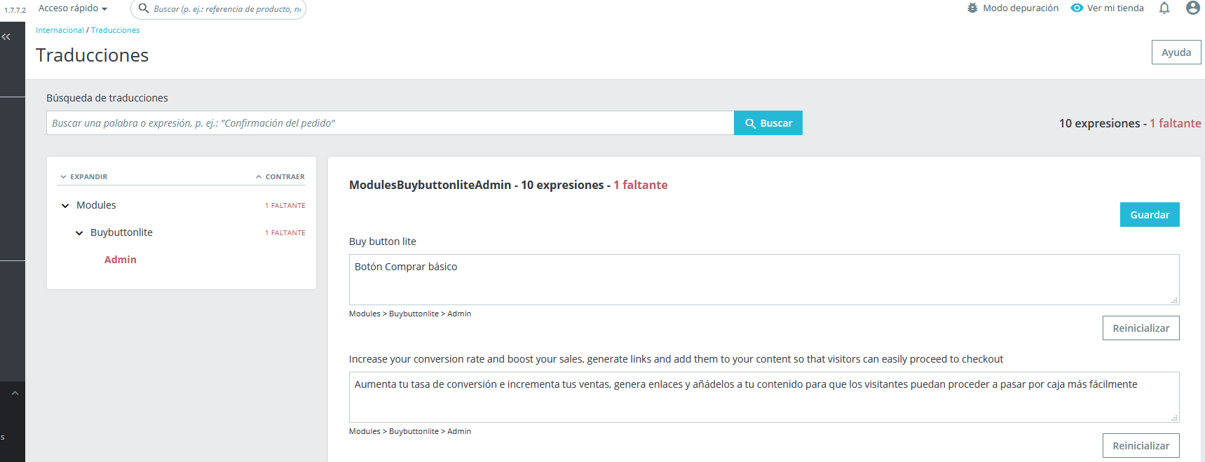 mike360 Posted February 26, 2021 Share Posted February 26, 2021 Hola, En el apartado traducciones me aparece el error "1 faltante", sin embargo no consigo localizar cuál es el campo que falta por traducir, todos los que consigo ver aparecen con su traducción. ¿Alguna idea de cómo localizarl o? Link to comment Share on other sites More sharing options...