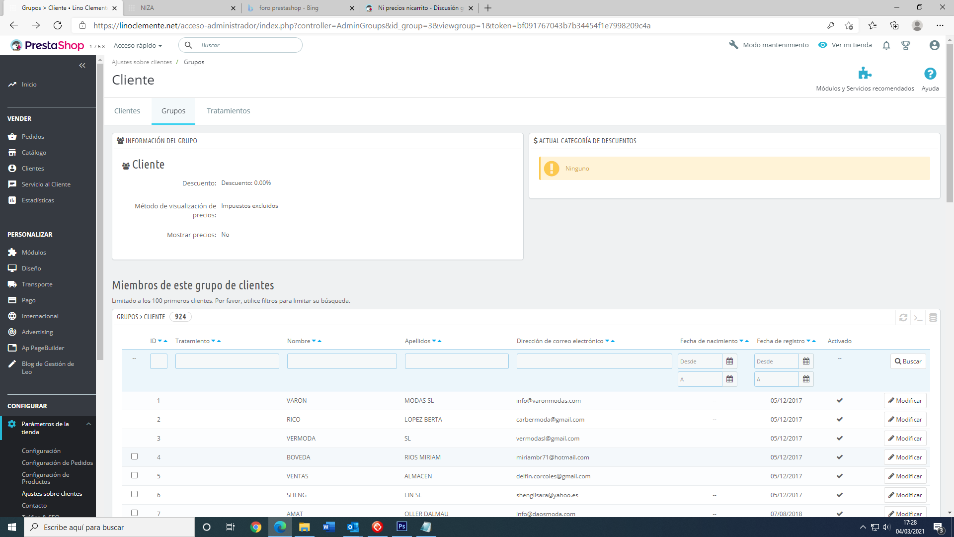 lianteli Posted March 4, 2021 Author Share Posted March 4, 2021 Sí, al loguearme debería ver los precios y al gestionarla desde adm también Link to comment Share on other sites More sharing options...