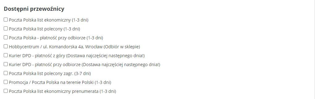 Czy można hurtowo zmienić/zaznaczyć Dostępnych Przewoźników w karcie Produktu?