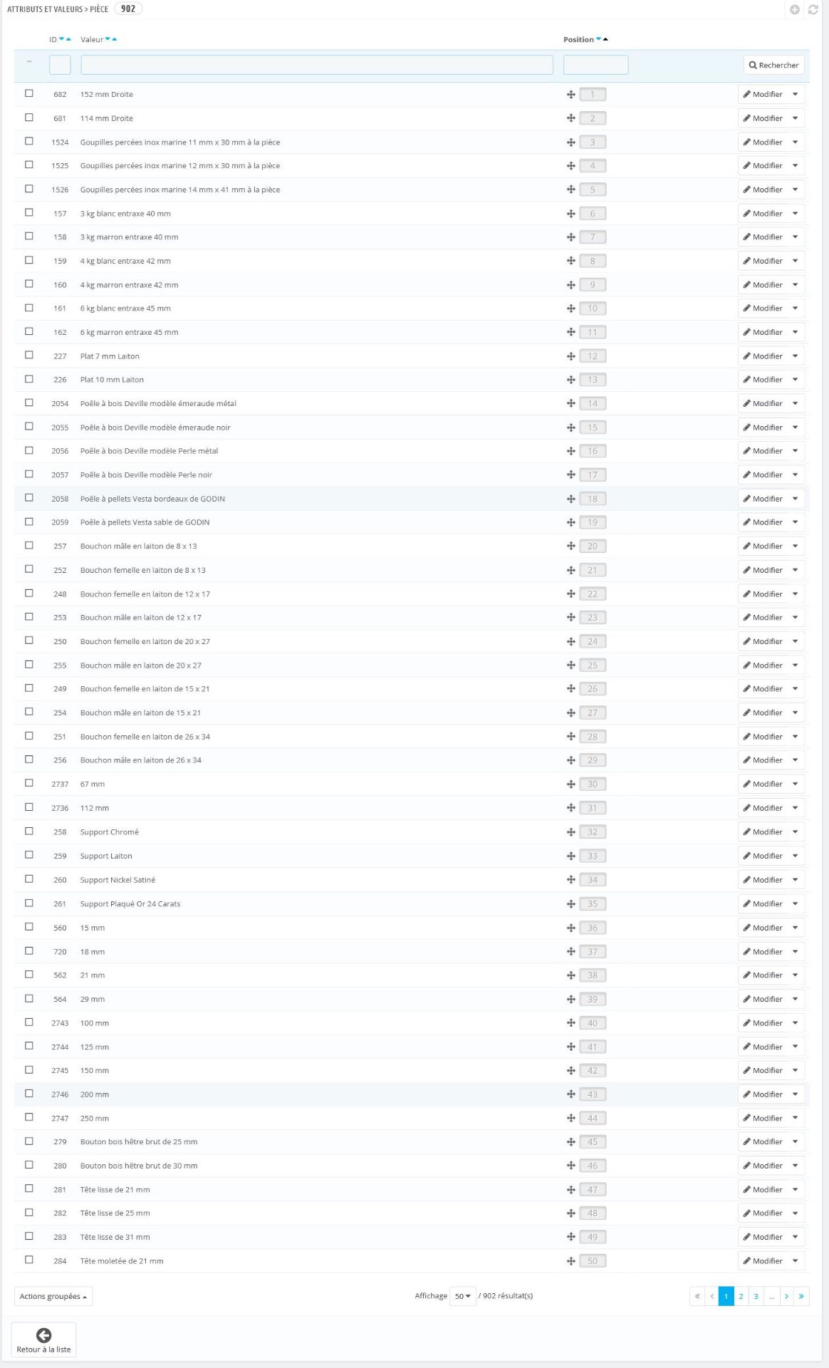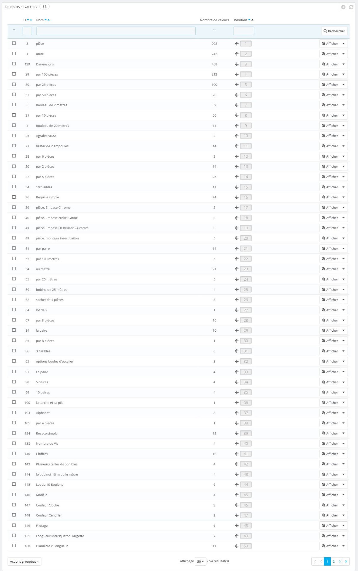 Tristan MAHE Posted March 8, 2021 Share Posted March 8, 2021 Bonjour à tous ! Étant actuellement en stage dans une boutique physique, je m'occupe seul de la partie Web. Le site étant existant depuis longtemps du travail à déjà été réalisé dessus. Or, soucis quelques mauvaises habitudes ont été prises et j'essaie (doucement mais sûrement ) de réparer et remettre dans le droit chemin ce site. Ma question aujourd'hui se porte sur les Attributs et Valeurs. Ceux-ci non pas bien été traités selon moi et je m'y intéressais afin de faire un tri pour potentiellement utiliser des filtres... Est-il possible de Définir à quelles fiches produits est rattachés telles ou telles valeurs ? Y a t-il une solution miracle pour réaliser un tri dans ces Attributs/Valeurs ? suppression auto des valeurs avec 0 affectation... Petit screen du BO Attributs/Valeurs du site, un plaisir. Link to comment Share on other sites More sharing options...