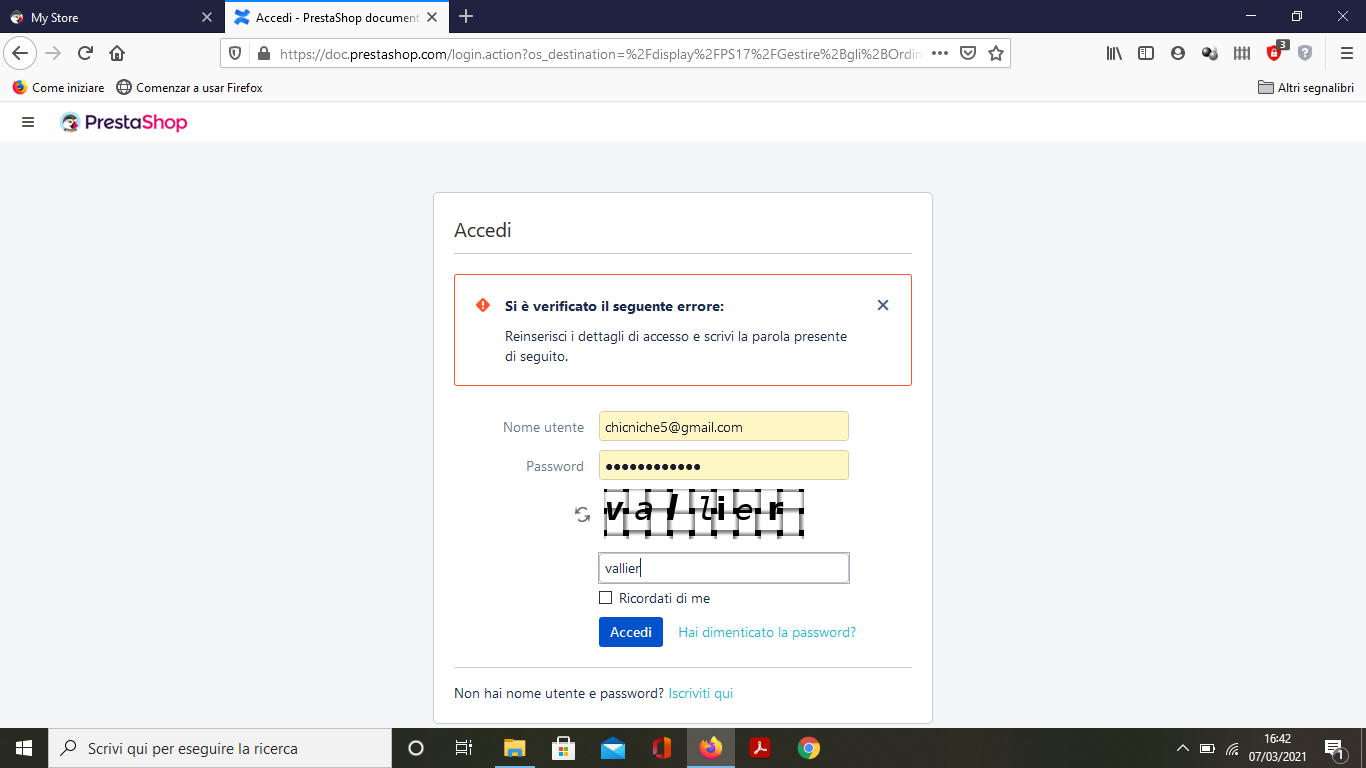 lechichniche Posted March 8, 2021 Share Posted March 8, 2021 Buongiorno, è dal 14 Febbraio 2021 che ho attivato il sito ,ma ancora non riesco a potere gestire il mio negozio on line perchè non mi fa accedere! Ho provato in tutti i modi ma niente! io devo aggiungere i file dei prodotti che vorrei vendere,sistemare il sistema bancario,fare descrizioni sui prodotti e tanto altro,ma non posso perchè ogni volta che tento di accedere al pannello di controllo mi da accesso negato,non mi riconosce la mail! il mio negozio on line è il seguente : https://www.lechicniche.com/ e ad entrare qui non ho problemi! adesso vi invio due stamp di dove ho enormi difficoltà di accesso con questa mail : [email protected] Password: magicPotion5 grazie di voler prendere urgentemente in carica questo mio tiket a presto Tiziana Maggio Link to comment Share on other sites More sharing options...
