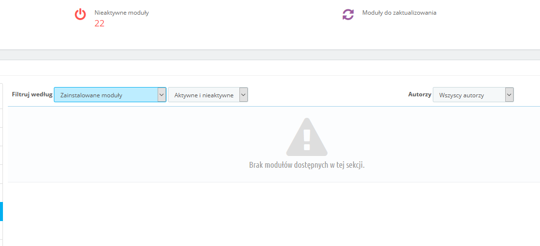 Dodam tylko, że moduły działają poprawnie na stronie, nie mam wyłącznie możliwości ich konfiguracji z poziomu BackOffice.