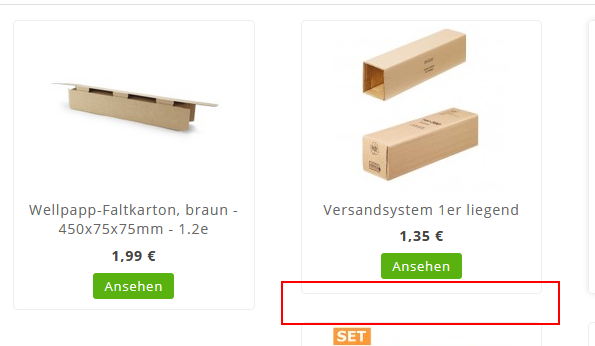 JBW Posted March 11, 2021 Share Posted March 11, 2021 Wenn du den Versatz bei den Kästchen meinst, dann könntest du dass z.B. durch eine feste höhe ausgleichen: .products .product-miniature { height: 290px; } in die customs.css einfügen. Wenn dann die Buttons noch auf einer Höhe sein sollen usätzlich die Höhe der Beschreibung "normieren". Link to comment Share on other sites More sharing options...