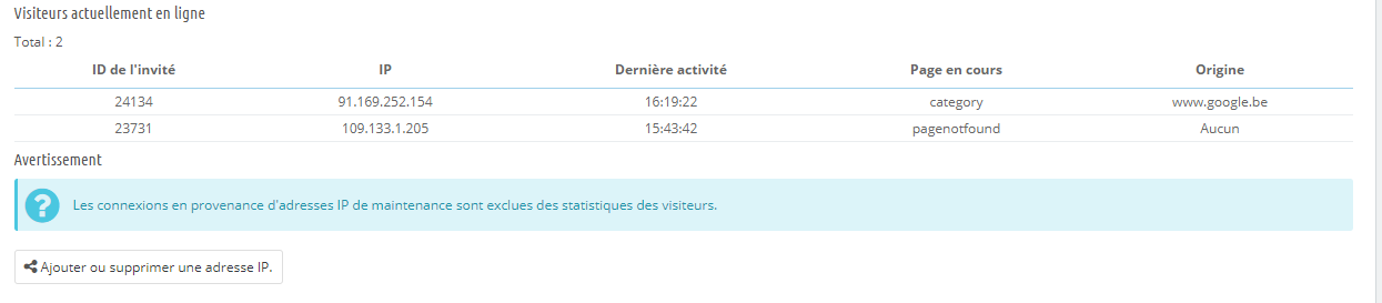 Je me permets de vous contacter aujourd'hui car nous venons de lancer notre site internet. Et dans mon back-office, quand je me dirige vers l'onglet : visiteurs en ligne (durant les 5 dernières minutes), je m'aperçois que ceux-ci navigue sur des pages "pagenotfound" ;