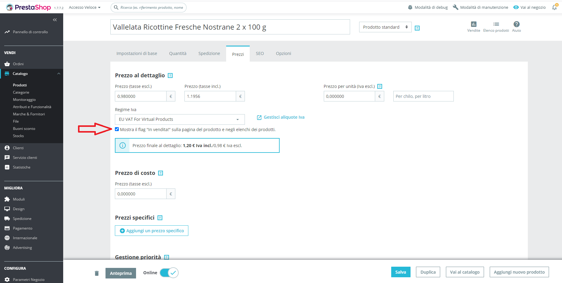 yeplab Posted March 12, 2021 Share Posted March 12, 2021 Buongiorno, vi espongo il mio problema. Dovrei raggruppare i prodotti "in saldo" in una pagina. Nella pagina dei prodotti in saldo già esistente raggruppa solo i prodotti che hanno una riduzione di prezzo, mentre io dovrei raggruppare tutti i prodotti che nella scheda prodotto hanno selezionato il flag "in saldo" (flag nella pagina del prodotto come mostrato nell'esempio). Come posso fare? Premetto che non posso creare una categoria "in vendita" per motivi di gestionale. Link to comment Share on other sites More sharing options...