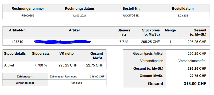 visars Posted March 15, 2021 Author Share Posted March 15, 2021 On 3/13/2021 at 4:07 PM, rictools said: Ich blicke nicht durch, was für unterschiedliche Rechnungen du meinst (und ich hasse diese Schlüsselloch-Screenshots wo man rätseln muß, woher der Ausschnitt stammt). Generell würde ich prüfen ob das Problem nur bei Versanddiensten auftritt die aus mehreren Wörtern bestehen (d. h. daß hier vielleicht nur das erste Wort angezeigt wird). Erstmals vielen Dank für die Antwort. Wo es falsch angezeigt wird: Backend - Bestellungen - eine Bestellung öffnen - Rechnung ansehen (von hier stammt auch der Screenshot). Zu deinem letzten Satz: Wo kann ich das anpassen? Link to comment Share on other sites More sharing options...