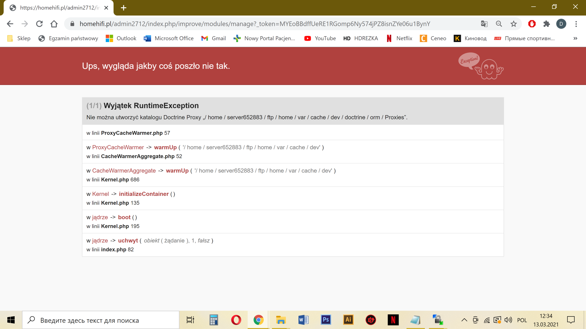 przy pracę w panelu administratora w prestashop z niewiadomego powodu panel przestał działać. Nie miałem dostępu do panelu logowania(wyświetlała się białą strona). Udało mi się wejść przez tryb debugowania i po odświeżeniu strony pokazuję błąd(w załączniku). Zrobiłem te zmiany