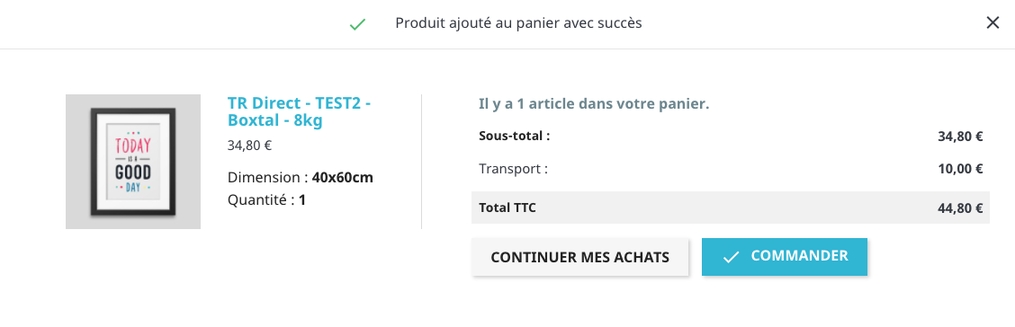 Je commence à comprendre... en fait je pensais que le choix de livraison n'était pas offert car un montant du transport apparaissait directement lors de l'ajout dans le panier (fichier joint) et dans ce cas, PS choisi le transporteur le plus économique (choix fait dans les préférences). Il faut en fait aller jusqu'à la validation de la commande (3 étapes plus loin) pour enfin accéder au choix du transporteur. Si le produit est éligible à l'enlèvement gratuit en magasin, alors le terme "gratuit" est affichée au moment de l'ajout dans le panier, le client pense que le transport est gratuit sans qu'il soit précisé que ce n'est que pour le retrait sur place... ce n'est qu'après la troisième étape qu'il est informé du transport payant....c'est un peu déroutant pour le client