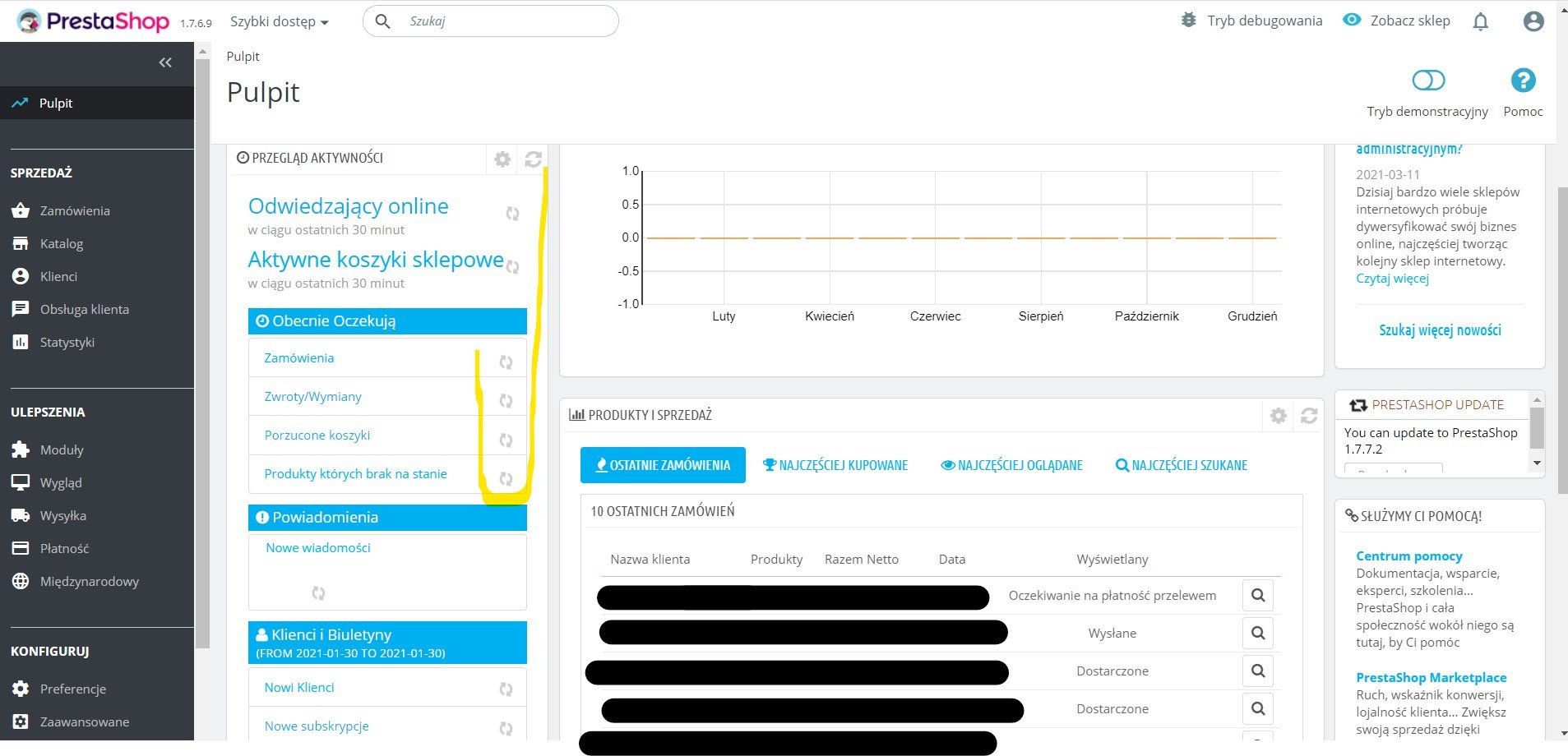 Sam panel działa całkiem sprawnie jednak pojawił się problem, że nie pokazują się "ostatnie aktywności" w sklepie. Cały czas jest tylko znaczek ładowania przy każdym i choćbym nie wiadomo ile czekała to nic się nie zmienia.