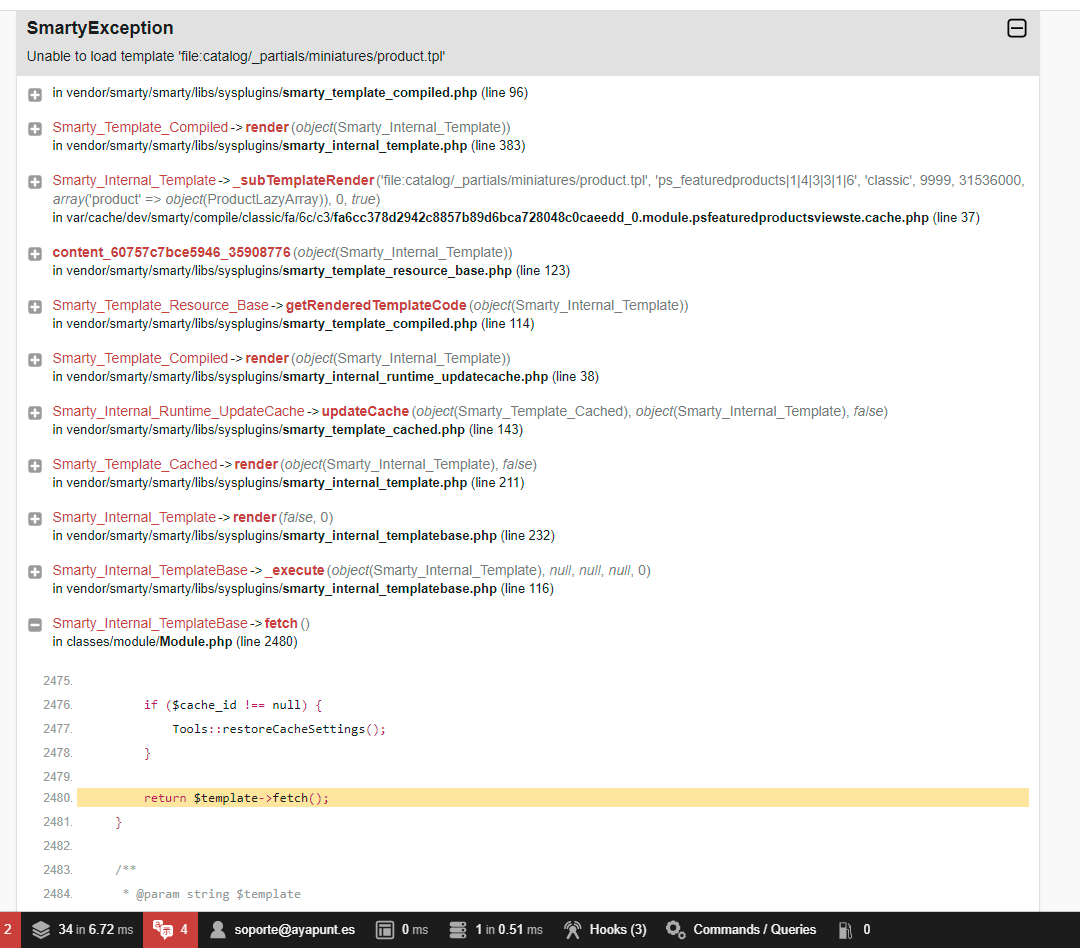 GEOCE Posted March 24, 2021 Share Posted March 24, 2021 Buenas, tengo el siguiente problema en una multitienda creada y es que cuando intento acceder a la ficha del cliente me aparece el siguiente error. An exception has been thrown during the rendering of a template ("Unable to load template 'file:catalog/_partials/miniatures/product.tpl'"). [Twig\Error\RuntimeError 0] He leído por otros Post que puede ser un problema de la base de datos. He limpiado los Cache, he copiado todos los archivos de nuevo, he mirado las versiones de PHP para que sean las correctas, no se que mas hacer excepto lo de la base de datos pero no se por donde mirar. Espero que algún alma caritativa me ayude. Gracias Link to comment Share on other sites More sharing options...