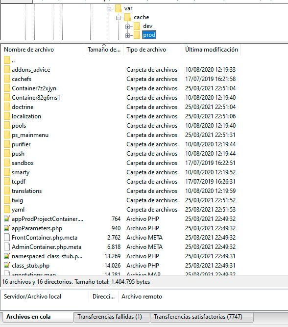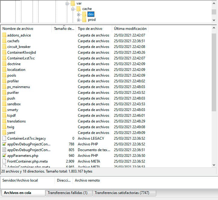 pijaworld Posted March 25, 2021 Author Share Posted March 25, 2021 (edited) 6 hours ago, juanrojas said: hola borra la cache desde el ftp para ver si cambia borrar la cache,¿es del directorio var/cache ? o de cache de la raiz del directorio? Hay dos carpetas dentro de var/cache - dev y prod. ¿como se borra la cache sin fastidiar nada en el intento? Se puede borrar la cache desde parametros avanzados? Edited March 25, 2021 by pijaworld (see edit history) Link to comment Share on other sites More sharing options...
