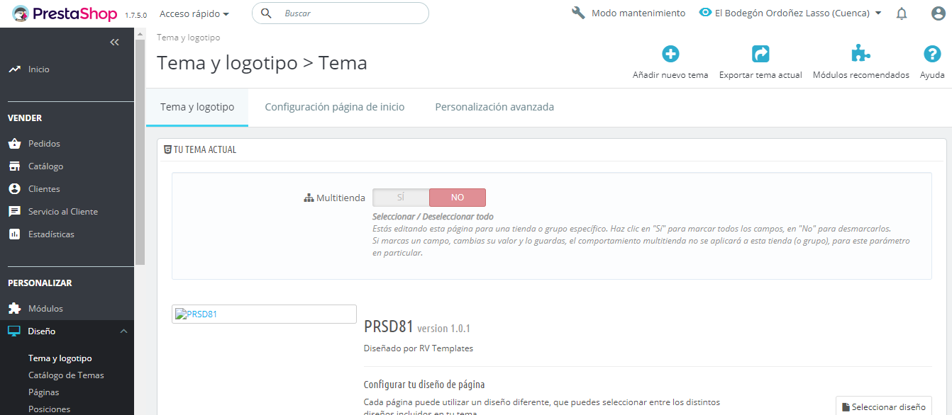 Franciscobp92 Posted March 29, 2021 Share Posted March 29, 2021 (edited) Buenas tardes, me podrían ayudar con un tema. Agregué un nuevo store a la nuestra web, pero no puedo aplicar el tema que tenemos para el resto de locales a la misma. El tema general es este (PRSD81) Pero al intentar configurar solo para la nueva tienda creada no tengo un preview del tema, y el diseño de la página no tiene formato. Que pude haber realizado mal o que tengo que cambiar para que me muestre con el theme correctamente? Edited March 29, 2021 by Franciscobp92 Add image (see edit history) Link to comment Share on other sites More sharing options...