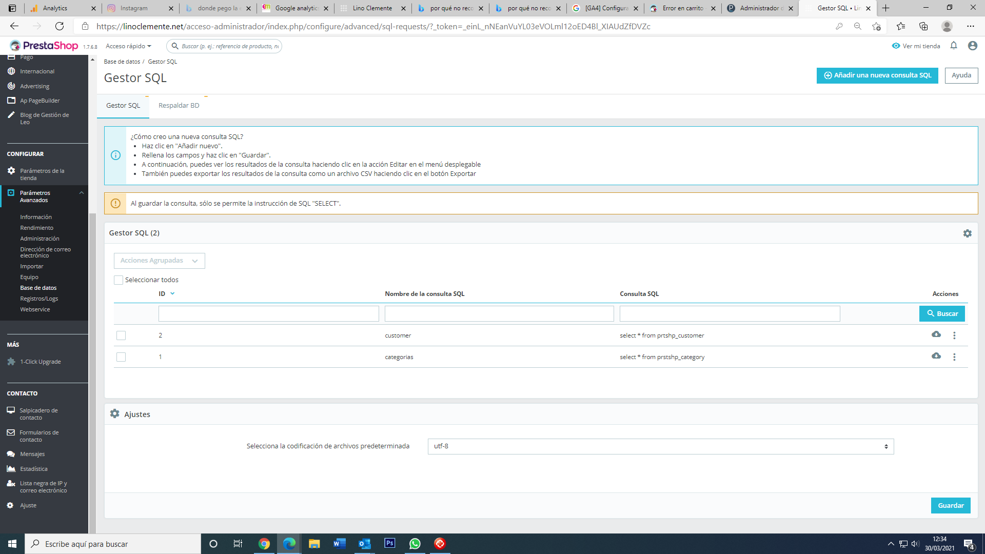 lianteli Posted March 29, 2021 Author Share Posted March 29, 2021 Sí, al meterme en el menú de prestashop (barra negra de la izquierda) en pedidos y luego en carritos de compra, me sale el primer pantallazo que he mandado Link to comment Share on other sites More sharing options...