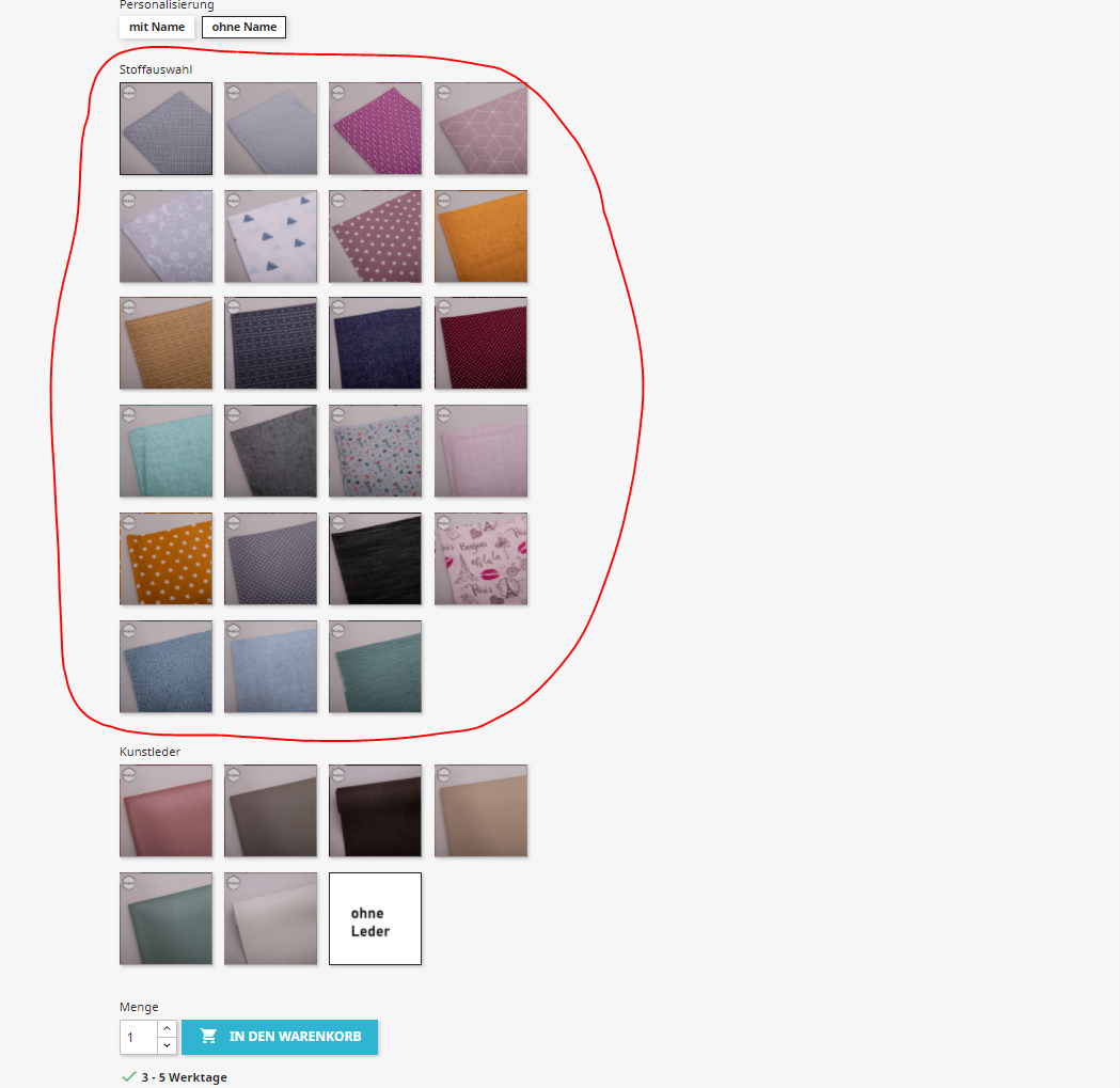 Sew for Two Handmade Posted April 1, 2021 Share Posted April 1, 2021 (edited) Hallo liebe Community Habe zur Zeit 1 Produkt mit sehr vielen unterschiedlichen Varianten im Shop wo sich Kunden/innen ihre Produkte individuell zusammenstellen können. In zukunft sollen es aber noch mehr werden wenn ich das passende Modul gefunden habe mit denen sich meine Wünsche realisieren lassen. Wie hier beim ersten Produkt, handelt es sich um MutterKind Pass Hüllen. Anbei im Foto seht ihr welche aus welchen Teilen sich die Varianten zusammenstellen. Da sich aber aufgrund der Kobinationen viele Varianten ergeben bin ich auf der Suche nach einem Modul wo ich zum Beispiel eine maximale Anzahl an verfügbaren Artikeln einstellen kann. Wie am Foto ersichtlich möchte ich zum Beispiel bei den eingekreisten Stoffmustern je eine Anzahl von sagen wir mal 5 Stück hinterlegen. Hoffe ihr wisst wie ich es meine? Ich möchte nicht das es wie hier zum Beispiel wenn man mit Leder und mit oder ohne Name kombiniert gesamt 70 Stück je Stoff zur Verfügung stehen sondern eben nur 5 Kann hier jemand ein Modul empfehlen mit dem dies machbar ist `? Leider gibt es hier zuviele Module und nicht die möglichkeit ein Modul zu testen um zu schauen ob es das richtige für einen ist. Danke und LG Edited April 1, 2021 by Sew for Two Handmade (see edit history) Link to comment Share on other sites More sharing options...