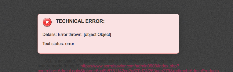 musicmaster Posted April 13, 2021 Share Posted April 13, 2021 On 4/12/2021 at 3:13 PM, Sorrel said: Please help me! I went to look at my backshop on Thursday and it had logged me out and will not let me back in! I have not done anything to cause this. It was working perfectly earlier that day. It is now showing his when I try and get in. I have tried contacting prestashop but no one has replied. This is an ajax error. So look for the underlying php error in the errorlog or by enabling debug mode. Link to comment Share on other sites More sharing options...