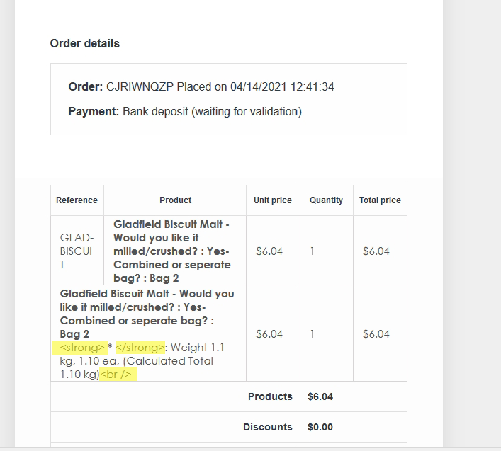inspectaclueso Posted April 14, 2021 Share Posted April 14, 2021 (edited) Hi, I have just installed PS 1.7.7.3 and I'm completing the setup and test of the site. I have an issue where HTML code is being displayed in the order confirmation email sent after an order is placed. Image attached. At present the only paid module I have installed is: Linear / Perimeter / Surface (Area) / Volume / Weight Calculation Module v5.3.6 - by MEG Venture A tool to calculate quantity in linear, perimeter, surface (area), volume or weight units. If I disable this module, the product customization info is not shown so no HTML tags are shown. I have contacted the author of that module however they have said their module does not alter the mails in any way and the text displayed in that area is using standard Prestashop product customization info. Can someone please confirm this is a bug with Prestashop and where/how to look and correct this issue. Thank you Edited April 15, 2021 by inspectaclueso (see edit history) Link to comment Share on other sites More sharing options...