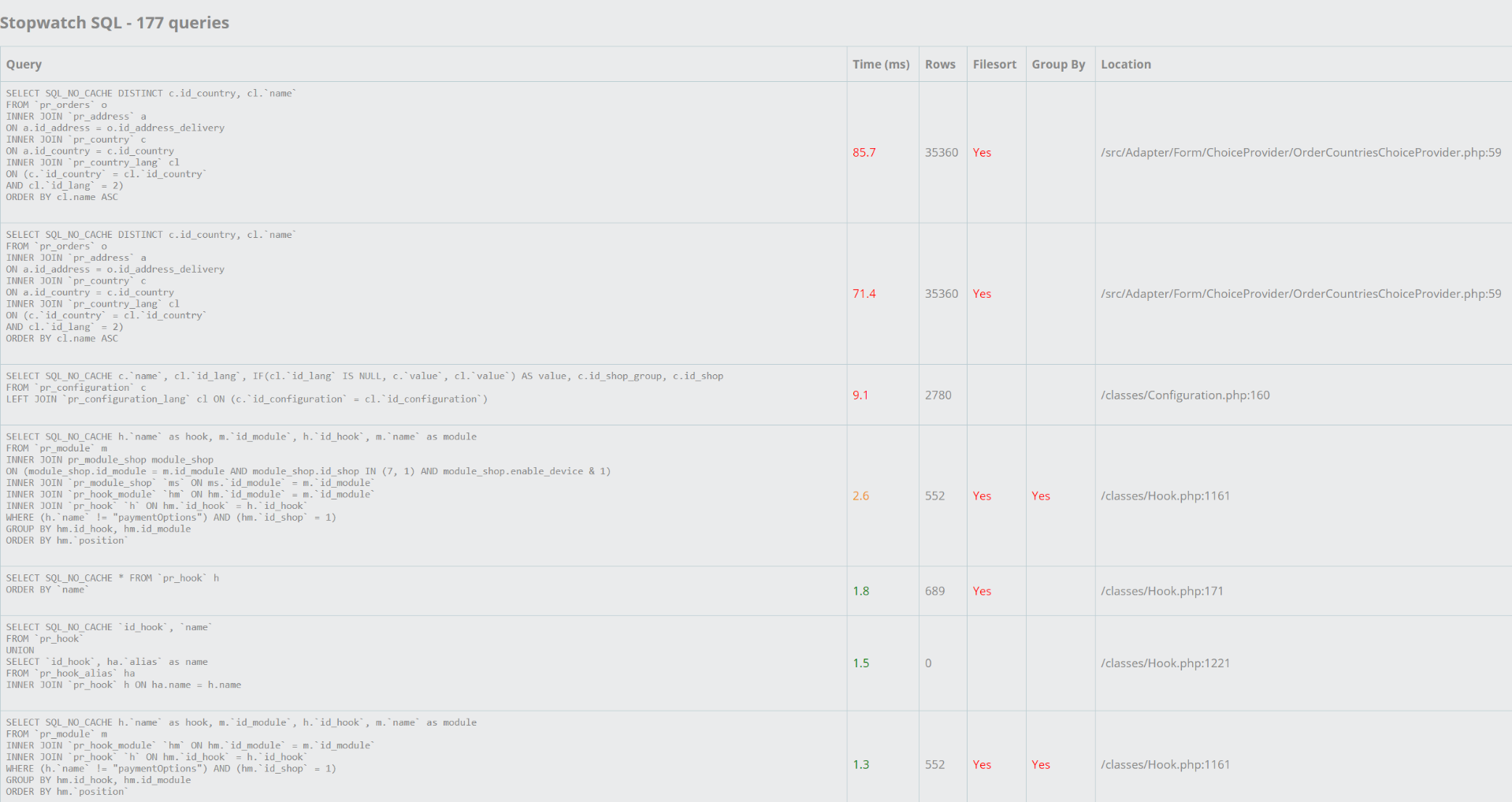 In the BO I also notice that when visiting the orders page, the loading of config takes up alot of memory and time. What does that mean?