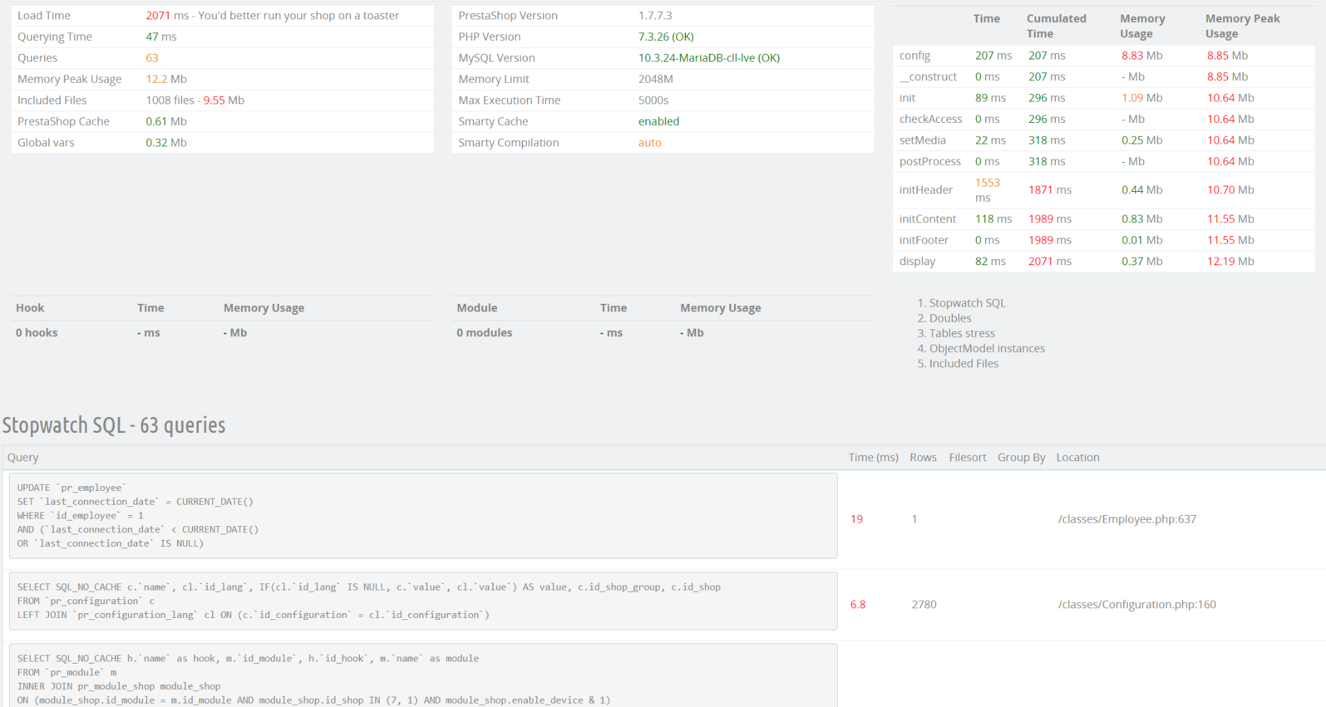 Config is faster when no visiting the orders page, but initHeader is slow on every BO page.