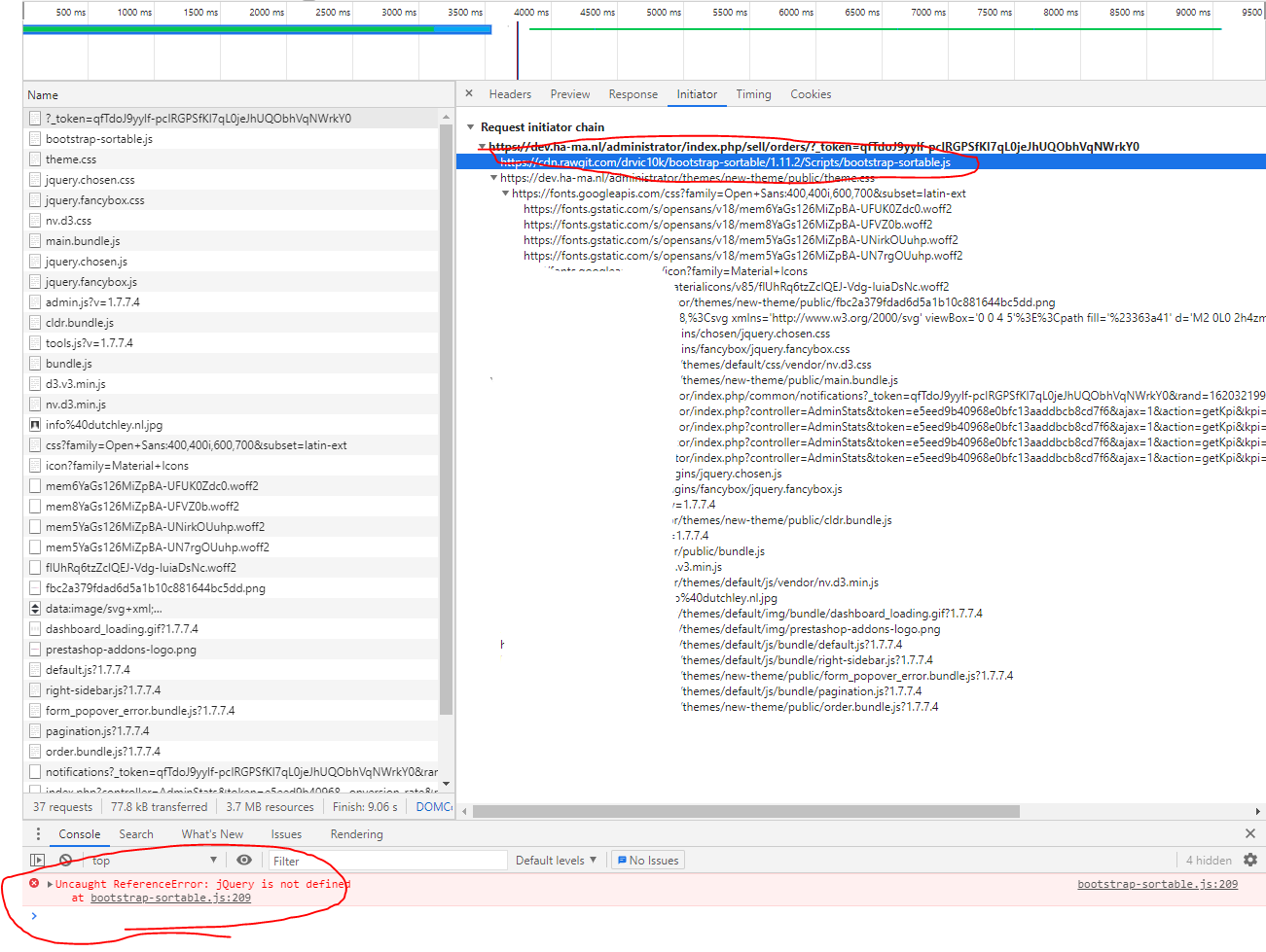 And when I check the Network tab, I see that this file: bootstrap-sortable.js is the first thing called.... is that coincidence?