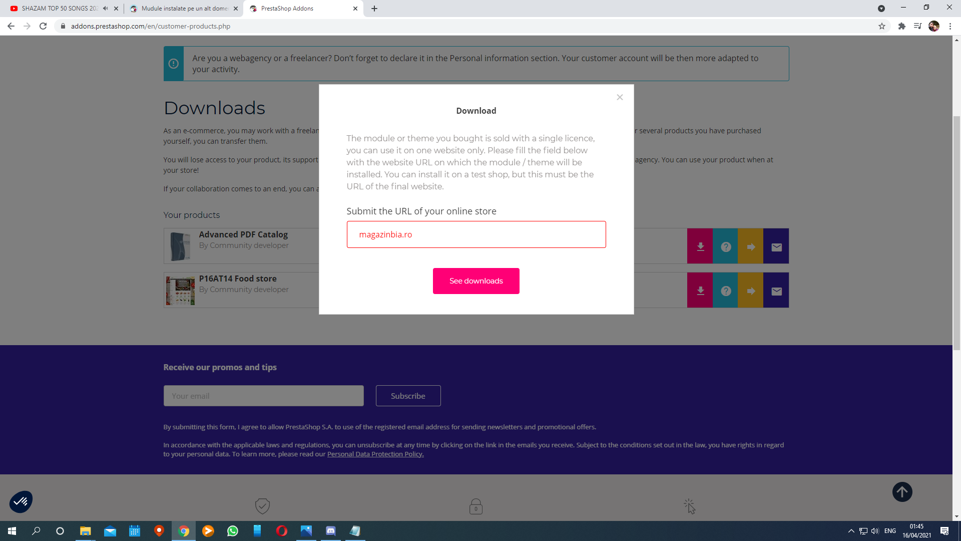 Adrian Pirjol Posted April 15, 2021 Share Posted April 15, 2021 (edited) Buna seara Imi cer scuze de la inceput daca nu cunosc termeni foarte precis sincer sunt un amator. Am cumparat 2 module din catalogul prestashop si leam instalat pe un domeniu care il am de test problema e ca atunci cand am vrut sa le instalez pe domeniul oficial pe care am siteul nu am mai reusit banuiesc ca se poate instala pe un singur domeniu cum as putea sa rezolv problema si sa le instalez pe domeniul oficial Multumesc Edited April 27, 2021 by Adrian Pirjol (see edit history) Link to comment Share on other sites More sharing options...
