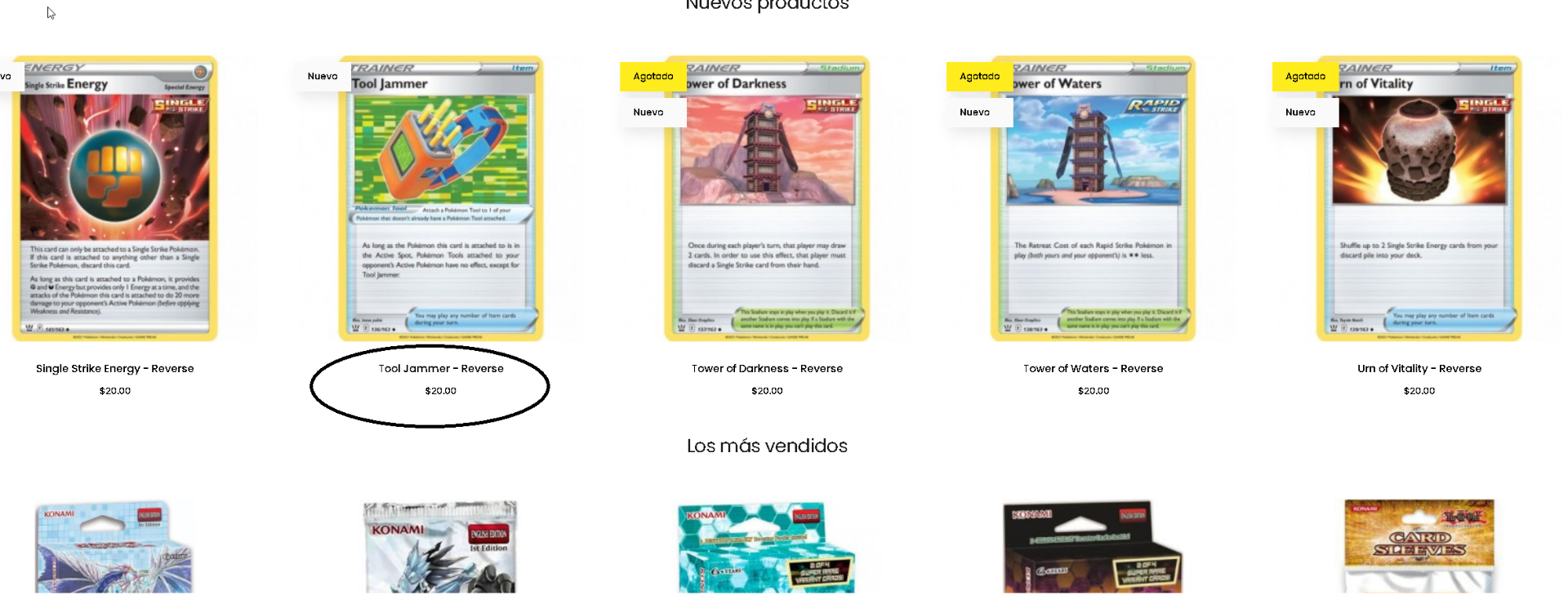 Actualmente los productos de mi tienda se muestran así solo con el nombre y el precio