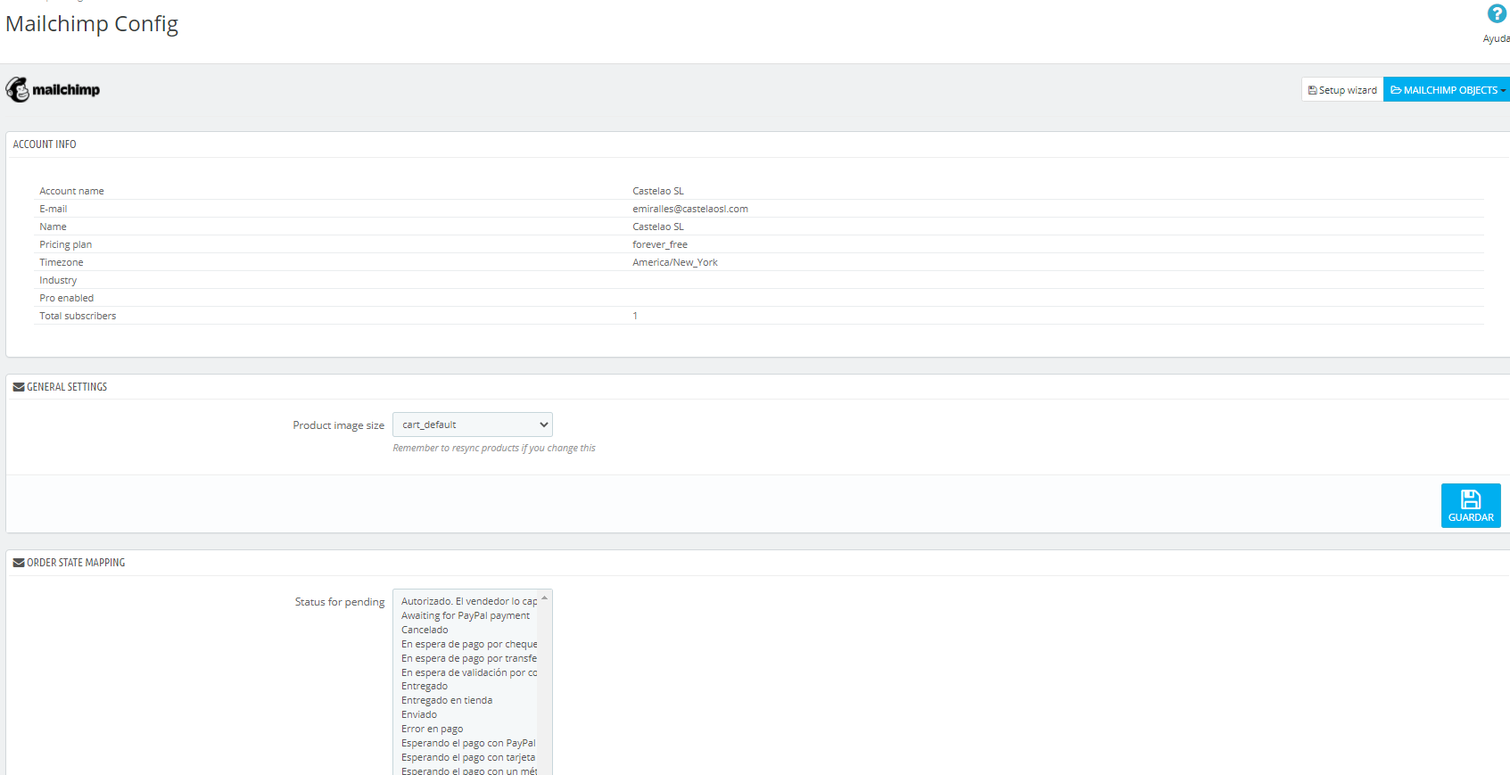 CastelaoSL Posted April 21, 2021 Share Posted April 21, 2021 Buenas! Queremos empezar a enviar Newsletters a los clientes que se han suscrito, pues ya tenemos unos cuantos. Hemos encontrado info sobre Mailchimp (módulo gratis para prestashop), pero no le hemos usado nunca y no acabamos de aclararnos. Hemos estado siguiendo estos pasos: https://www.tiendaonlinemurcia.es/newsletter-mailchimp-prestashop/ Pero en el momento en el que ponen esta captura para seleccionar lista: A nosotros no nos sale. Esta es la página principal del módulo mailchimp que hemos instalado: y el único sitio donde aparece algo parecido a seleccionar una lista es "Setup wizard" (en el segundo paso): y no hay ninguna opción de crear una lista. ¿Alguien sabe como funciona todo esto? U otra manera de enviar newsletters? Gracias! Link to comment Share on other sites More sharing options...