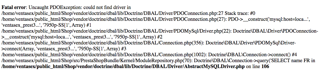 Tomrod Posted April 23, 2021 Author Share Posted April 23, 2021 Realicé todo lo indicado sin resultados y decidí bajar la ultima version de PrestaShop nuevamente bajo otro nombre en mi servidor la 1.7.7.3. El PHP esta en la version 7.3 A la version anterior le cambié el nombre y le coloqué OLD al inicio para identificarlo como el viejo. No lo he borrado del todo ya que hay ciertos archivos que me gustaría mover a la nueva versión. Cuando intento ingresar al BO me sale un error 500 al igual que al querer ingresar directo a la pagina. www.ventasexpress.online/Shop me sale error también abajo una captura con el Debug. Si debo borrar todos los ficheros lo hago sin problemas pero me gustaría saber que ficheros mantienen las categorías, imagenes y traducciones ya realizadas anteriormente en el 1.7.7.2 para transferir los datos si no genera ningún problema. Link to comment Share on other sites More sharing options...
