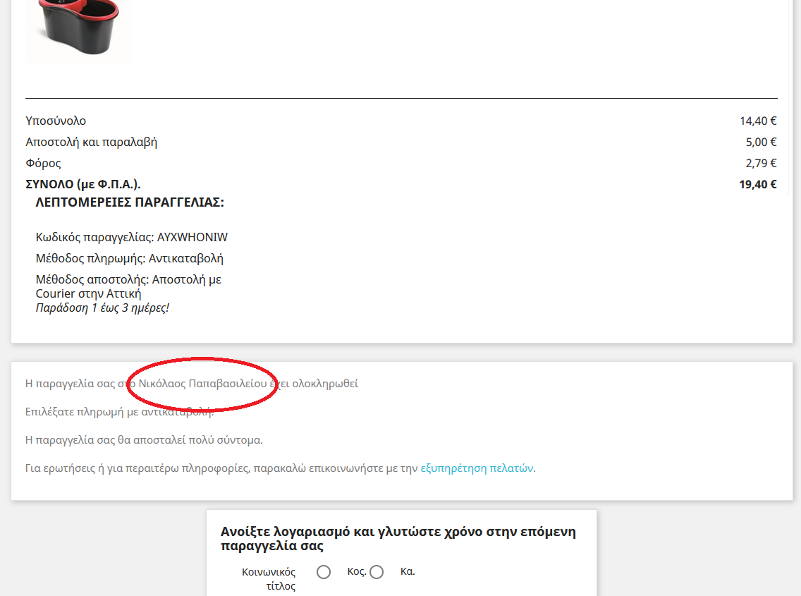 nikosppv Posted April 30, 2021 Share Posted April 30, 2021 Θα ήθελα την βοήθειά σας σε κάτι... Εχω δημιουργήσει ένα eshop με το presta και όταν γίνει μια νέα παραγγελία και ολοκληρωθεί, μετά το πάτημα του κουμπιού "Πληρωμή" βγάζει την επιβεβαίωση της παραγγελίας. Εκεί προς το τέλος αναφέρει το όνομα του eshop το οποίο το βγάζει λάθος. Ξέρει κανείς πως μπορώ να το αλλάξω; Να σας πω ότι έχω κάνει μεταφορά του eshop σε άλλο domain και ενώ όλα λειτουργούν καλά (το έχω αλλάξει παντού) βγαίνει το παλιό μόνο σε εκείνο το σημείο... Επισυνάπτω και μια φωτογραφία που δείχνει που είναι το λάθος όνομα. Ευχαριστώ πολύ! Link to comment Share on other sites More sharing options...