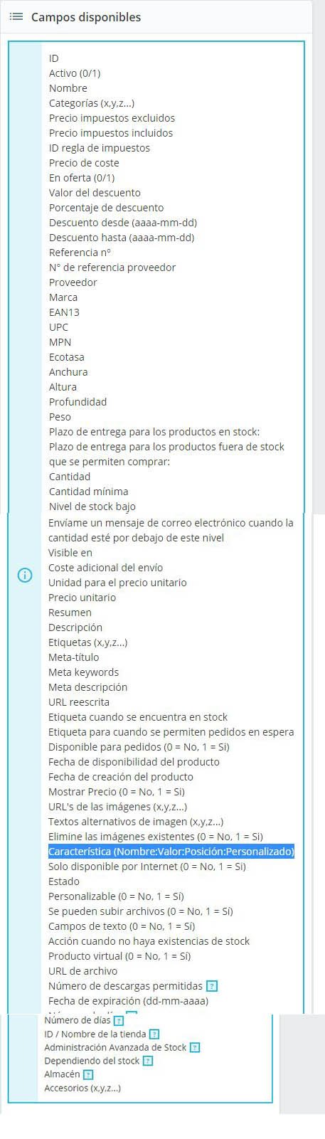 balance Posted April 30, 2021 Share Posted April 30, 2021 (edited) Mi proveedor me envia el catálogo en csv. Quiero asignar la columna stock al archivo de importación. MI proveedor me envia la columna stock (foto1). ¿a que columna tengo que asignarle? (foto2) Gracias Edited April 30, 2021 by balance (see edit history) Link to comment Share on other sites More sharing options...