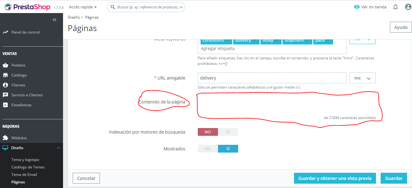 I have problems creating or modifying a static page in prestashop 1.7.7.3, the label "page content" does not appear and this happens with any web browser, I have already deleted the cokkies and temporary ones and the problem persists. I appreciate the help, regards.