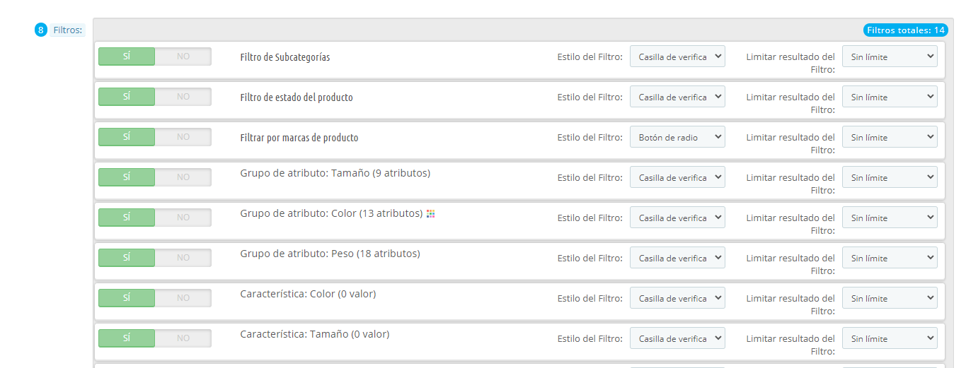 Hola amigos !!!...favor su ayuda. Antes tenia el tema CLASSIC y me estaba desplegando el variado de filtros que tenia configurado en FACETAS:
