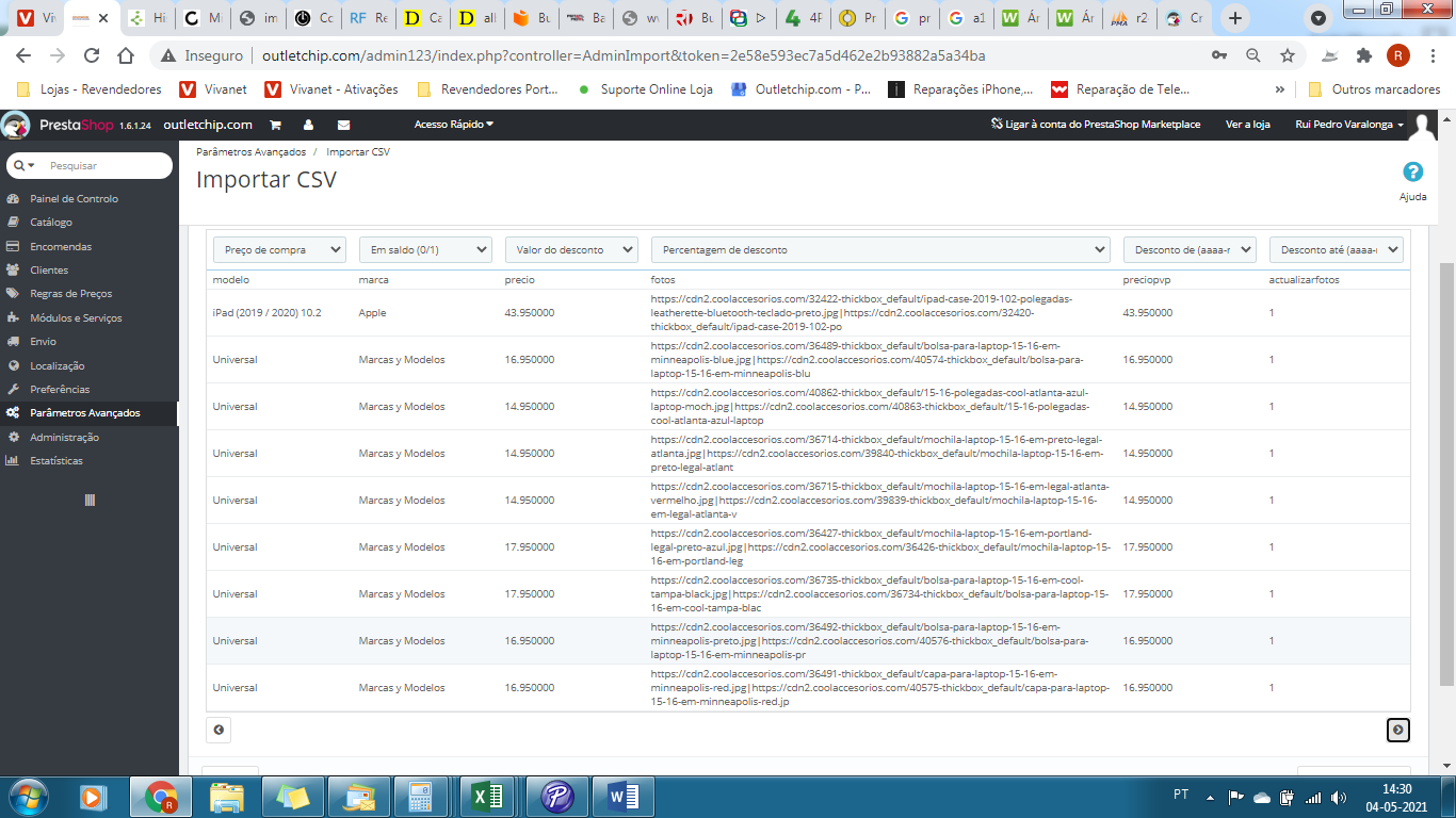 Rui Pedro Posted May 4, 2021 Share Posted May 4, 2021 Olá a todos Estou com um problema que não consigo ultrapassar, quando importo um ficheiro .csv , a falta de caracteres nos campos do link das fotos, e falta de caracteres no campo da descrição, nas fotos faz com que não apareçam, no campo descrição corta metade da descrição. Desde já obrigado a todos os que possam ajudar a aumentar o valor destes campos. Rui Pedro Link to comment Share on other sites More sharing options...