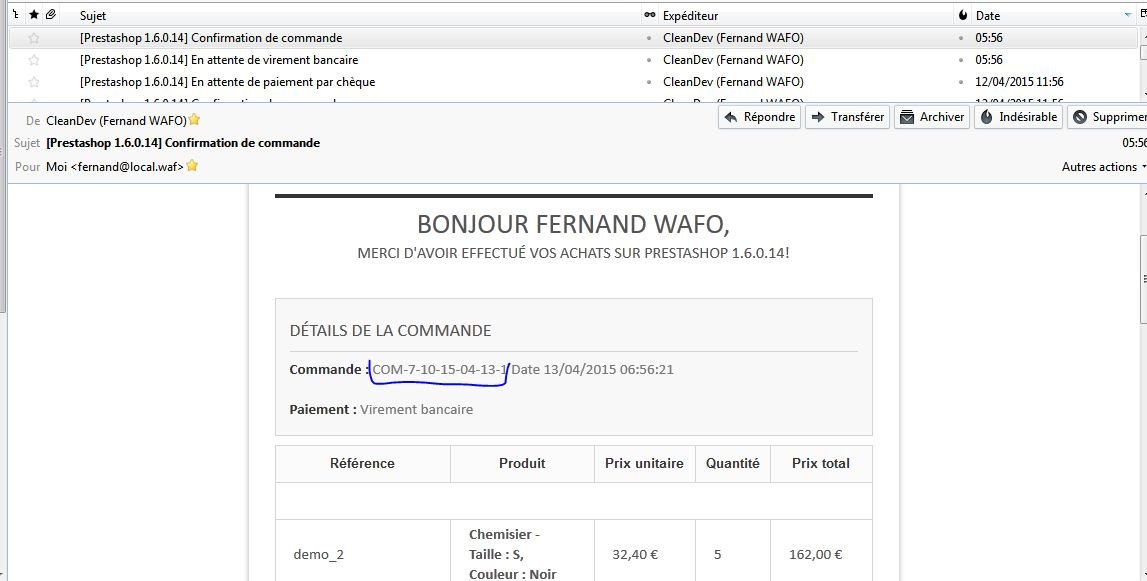 Fernand WAFO Posted May 5, 2021 Share Posted May 5, 2021 Vous souhaitez prendre des décisions ou avoir des informations plus complètes à partir de la référence de votre commande. Ce module vous donne un lexique varié pour personnaliser les références de votre commande à votre gré. Gain de temps : Pas besoin de fouiller dans tous les onglets pour avoir les informations sur une commande Facilité de gestion interne Personnalisation efficace des logiciels des ERP tiers Lexique varié pour vous donner toutes les possibilités de personnalisation Présent partout où la commande est disponible : mail, factures, admin, ... Ce module vous donne un lexique varié pour personnaliser les références de votre commande à votre gré. Vous avez un champs de configuration qui vous permet d'user de votre propres termes et des termes du lexique pour former des références commande à votre guise. Cette référence sera donc changé partout : factures, mails, administration, historique de commandes, .... Ce lexique est composé de : - [ORDER] Représente l'identifiant de la commande - [CART] Représente l'identifiant du panier - [CUSTOMER] Représente l'identifiant du client qui passe la commande - [YYYY] ou [YY] Représente l’année en cours sur quatre chiffres pour [YYYY] et deux chiffres pour [YY] ; - [MM] Représente le mois en cours - [DD] Représente le jour en cours - [RX] Représente le rang de la commande. Il se définit en fonction de X. Ansi : * [RY] est le rang de la commande dans l'année en cours * [RM] est le rang de la commande dans le mois en cours * [RD] est le rang de la commande dans la journée en cours Par exemple : * COM-[ORDER]-[CART]-[DD]/[MM]/[YY]-[RD] vous donnera par exemple COM-10-20-13/04/15-3 où 10 est l'id de la commande, 20 et l'id du panier, 13/04/15 est la date du jour et 3 veut dire "3e commande de la journée" * #[ORDER]/[RY]-[YYYY] vous donnera par exemple #10/100-2015 où 10 est l'id de la commande, 100-15 veut dire "100e commande de n'année 2015". La prochaine commande dans ce cas sera certainement : #11/101-2015 * #[ORDER]-[CUSTOMER]/[RY]-[YYYY] vous donnera par exemple #10-15/100-2015 où 10 est l'id de la commande, 15 est l'id du client qui passe la commande et 100-15 veut dire "100e commande de n'année 2015". La prochaine commande dans ce cas sera certainement : #11-15/101-2015 (si c'est la même client qui a encore passé la commande) Notez que vous pouvez utiliser toute autre chaine n'appartenant pas au lexique. Et celles ci seront concervées telles quelles. Link to comment Share on other sites More sharing options...
