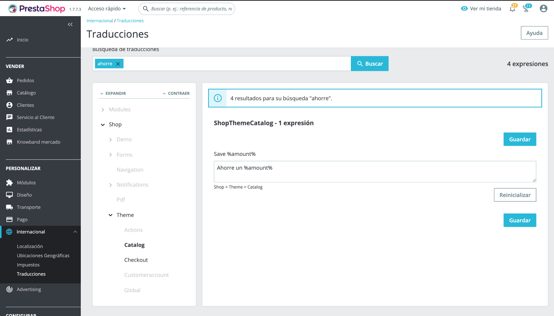 He buscado en traducciones y no me aparece esa traducción, no se si debo buscar en traducciones de módulos instalados.