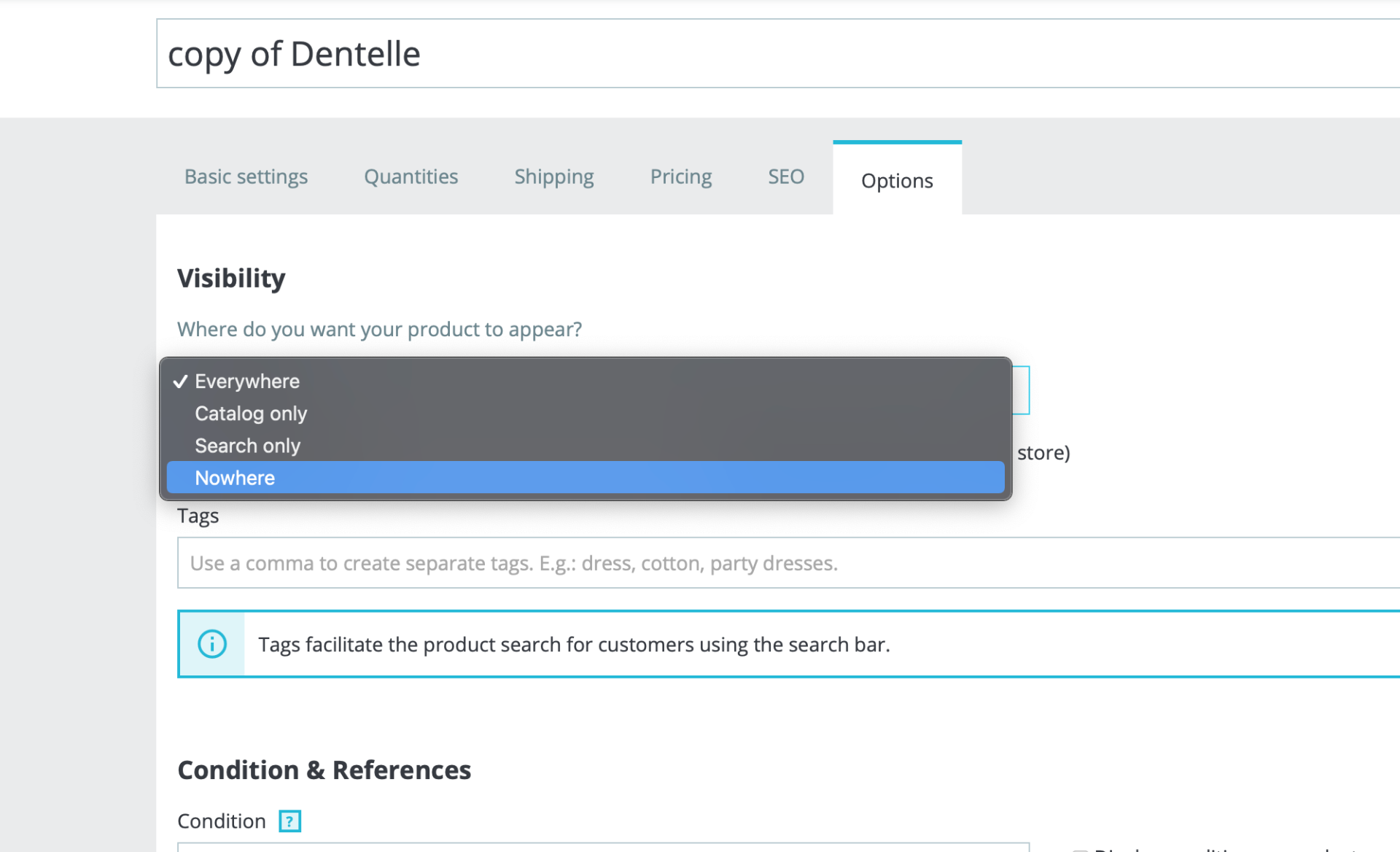 Hide active products on frontend