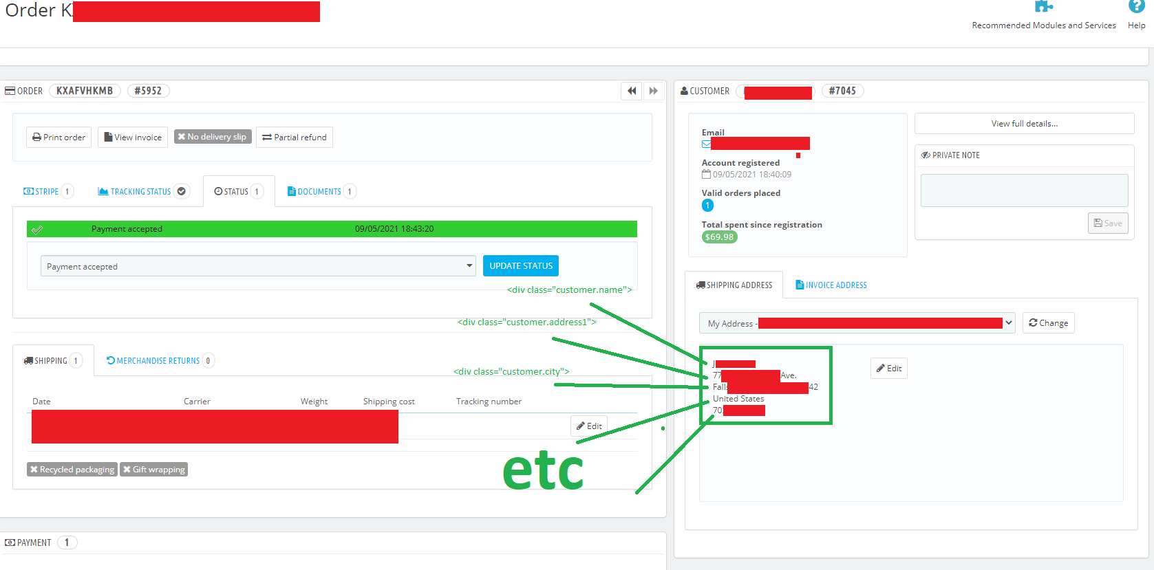 sampsonzak Posted May 9, 2021 Share Posted May 9, 2021 Hi all, I need to add some sort of DIV/CLASS to my customer address information in my back-end to speed up order fulfilment (automatically copy & paste) into fulfilment software. I cannot find the file that I need to edit to do so. I am running PrestaShop 1.7.2 Could someone please help? Please see attached picture. I need to add CSS/DIV information to this text, but I cannot find the file location that I need to edit! Thank you all! Link to comment Share on other sites More sharing options...